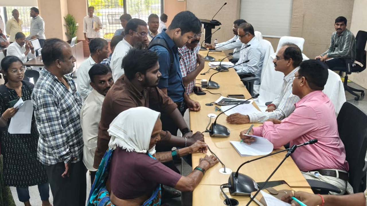 జిల్లాలోని వివిధ ప్రాంతాల నుంచి వచ్చిన ఫిర్యాదుదారులు తమ సమస్యలను అదనపు కలెక్టర్తో (Additional Collector Kiran Kumar) పాటు నగర పాలక సంస్థ కమిషనర్ దిలీప్ కుమార్, హౌసింగ్ పీడీ పవన్ కుమార్, జిల్లా పరిషత్ డిప్యూటీ సీఈవో సాయన్నలకు విన్నవిస్తూ అర్జీలు సమర్పించారు. కాగా.. అర్జీలను పెండింగ్లో పెట్టకుండా ఎప్పటికప్పుడు పరిశీలన జరుపుతూ సత్వరమే పరిష్కరించాలని అదనపు కలెక్టర్ కిరణ్ కుమార్ అధికారులకు సూచించారు. కార్యక్రమంలో వివిధ శాఖల అధికారులు పాల్గొన్నారు.
