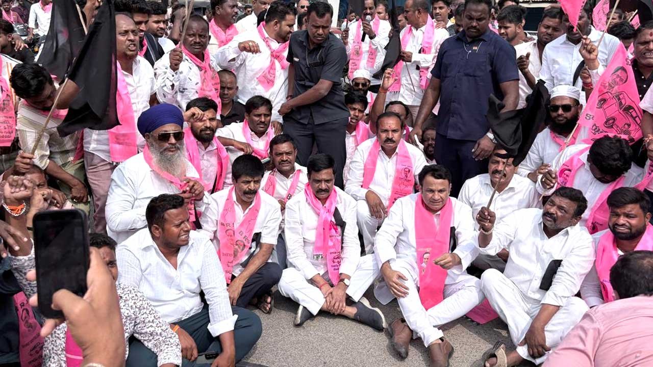సిట్ విచారణకు వ్యతిరేకంగా సీఎం రేవంత్ రెడ్డి (CM Revanth Reddy) దిష్టిబొమ్మ దహనం చేయడానికి బీఆర్ఎస్ నాయకులు ప్రయత్నించారు. అయితే పోలీసులు ఈ చర్యలను అడ్డగించారు. దీంతో బీఆర్ఎస్ నేతలు పోలీసుల మధ్య కాస్త తోపులాట చోటుచేసుకుంది. కొందరు కార్యకర్తలను అరెస్టు చేసి పోలీస్ స్టేషన్కు తరలించారు. అలాగే ఎమ్మెల్యే ప్రశాంత్ రెడ్డి, మాజీ ఎమ్మెల్యే గణేష్ గుప్తా (Former MLA Ganesh Gupta), నగర అధ్యక్షుడు రాజు, నుడా మాజీ ఛైర్మన్ ప్రభాకర్ను అడ్డుకొని పార్టీ కార్యాలయానికి తరలించారు.