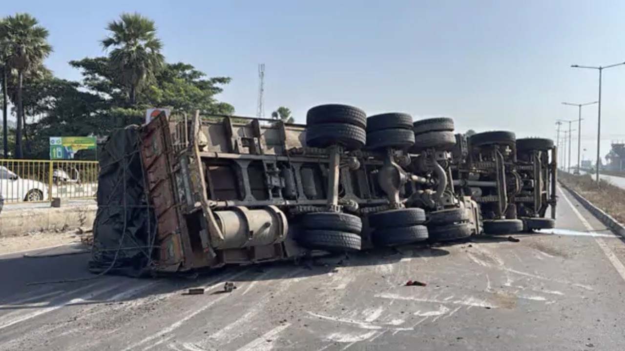 అక్షరటుడే, వెబ్డెస్క్ : Traffic Jam | హైదరాబాద్ – విజయవాడ హైవేపై లారీ అదుపుతప్పి బోల్తా పడింది. దీంతో కిలోమీటర్ల మేర వాహనాలు నిలిచిపోయాయి. అబ్దుల్లాపూర్మెట్ మండలం (Abdullapurmet Mandal) ఇనాంగూడ కట్టెల లోడ్తో వెళ్తున్న లారీ బోల్తా పడింది.