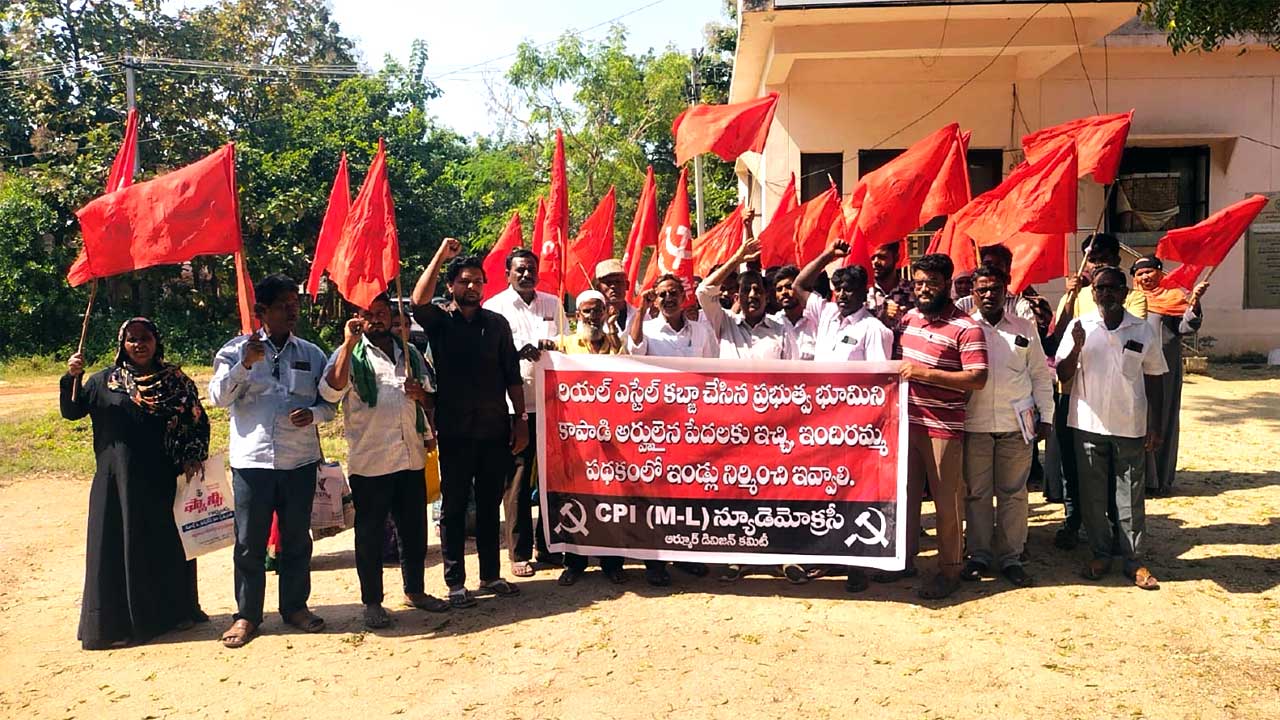 అనంతరం సబ్కలెక్టర్ అభిగ్యాన్ మాల్వియాకు (Sub-Collector Abhigyan Malviya) వినతిపత్రం అందజేశారు. అనంతరం ఆయన మాట్లాడుతూ.. రియల్ ఎస్టేట్ వ్యాపారి తీగల నర్సారెడ్డి ప్రభుత్వ భూమిని కబ్జా చేశారని ఆరోపించారు. ఆ స్థలాన్ని వెంటనే కబ్జా నుంచి విడిపించి పేదలకు ఇందిరమ్మ ఇళ్లు కట్టించాలని డిమాండ్ చేశారు.