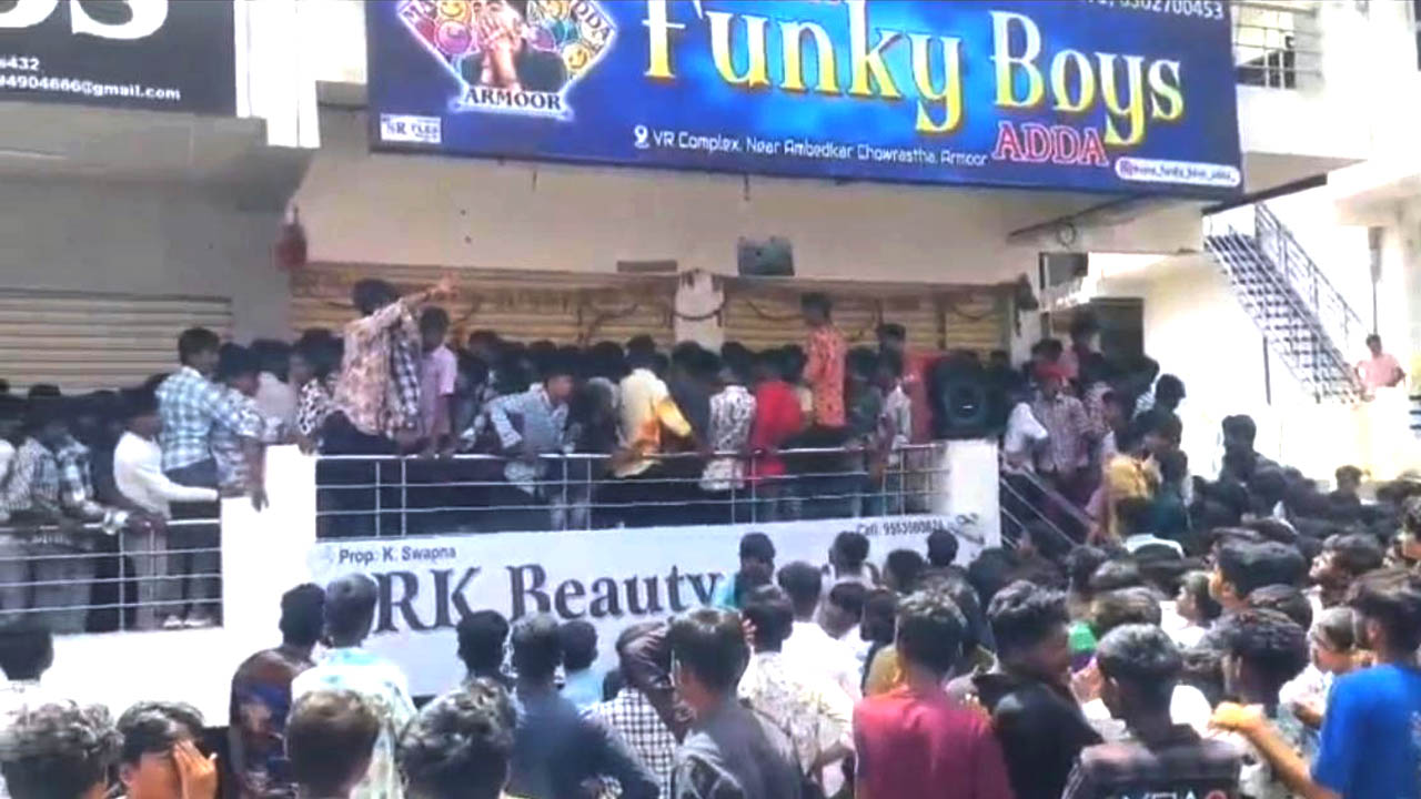 ప్రస్తుతం డిస్కౌంట్, ప్రత్యేక ఆఫర్ అంటే ప్రజలు షాపింగ్ చేయడానికి పరుగు పెడుతున్నారు. ముందు వెనక చూడకుండా ఆయా దుకాణాలకు వెళ్తున్నారు. తాజాగా ఆర్మూర్లో ఓ వ్యక్తి రూ.10కే డ్రెస్ అందిస్తామని ఆఫర్ పెట్టాడు. పట్టణంలోని ఆర్కే కాంప్లెక్స్ వెనక గల ఫంకీ బాయ్స్ డ్రెస్సెస్లో (Funky Boys Dresses) ఈ ప్రత్యేక ఆఫర్ ఉన్నట్లు సోషల్ మీడియాలో ప్రచారం జరిగింది. దీంతో పట్టణంతో పాటు చుట్టు పక్కల గ్రామాల నుంచి యువకులు భారీగా దుకాణానికి చేరుకున్నారు. ఈ క్రమంలో షాపు ఎదుట భారీగా ప్రజలు బారులు తీరడంతో ట్రాఫిక్కు అంతరాయం కలిగింది.