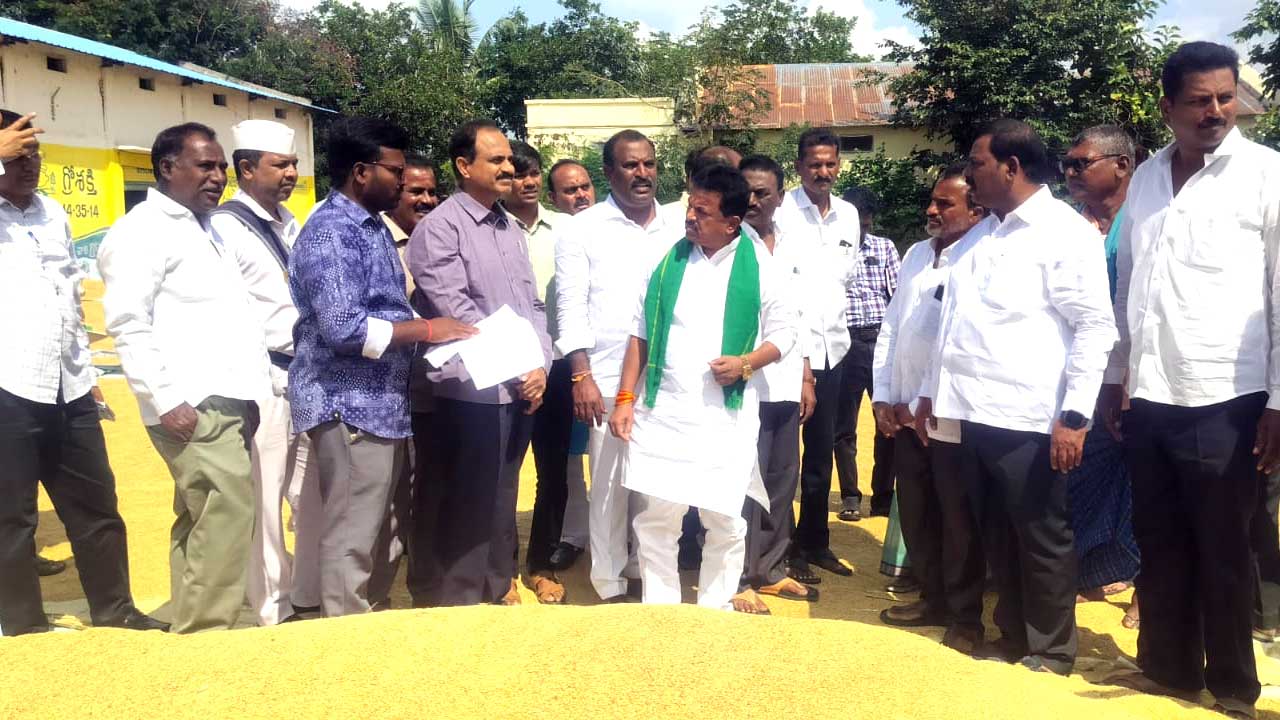 రైతుల నుంచి ఇప్పటివరకు సేకరించిన ధాన్యం నిల్వల గురించి కేంద్రాల నిర్వాహకులను వివరాలు అడిగి తెలుసుకున్నారు. రైతుల సౌకర్యార్థం కేంద్రంలో అందుబాటులో ఉంచిన సదుపాయాలను పరిశీలించారు. కేంద్రానికి ధాన్యం తీసుకువచ్చిన రైతులను పలకరించి, కొనుగోలు కేంద్రాల్లో (purchase centers) ఏమైనా ఇబ్బందులు ఉన్నాయా? అని ఆరా తీశారు. ఇటీవల కురిసిన వర్షానికి తడిసిన ధాన్యాన్ని పరిశీలించారు.