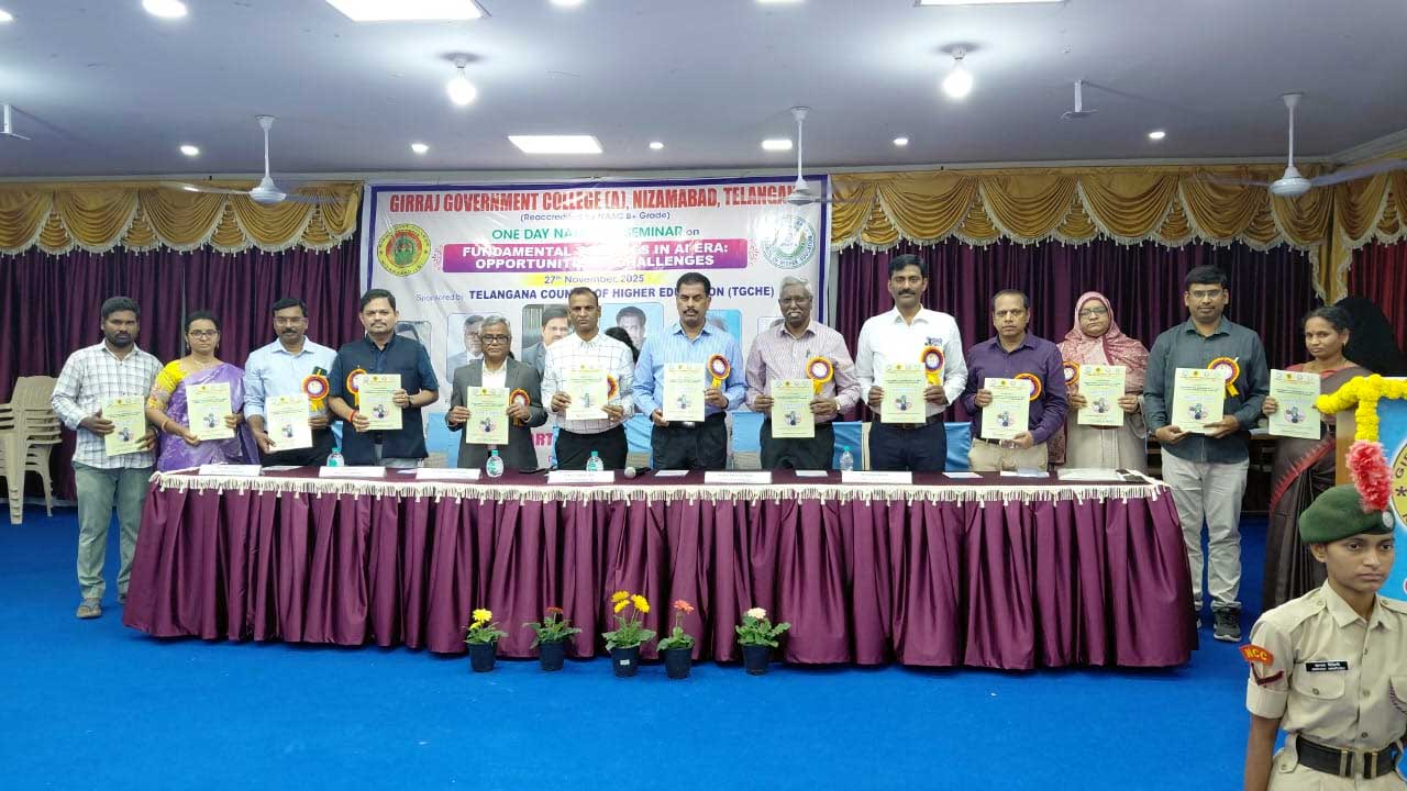 అక్షరటుడే, ఇందూరు: Giriraj College | మానవమేధస్సుకు ఏఐ సహాయం చేసే పరికరమని తెలంగాణ యూనివర్సిటీ వైస్ ఛాన్స్లర్ ప్రొఫెసర్ యాదగిరిరావు అన్నారు. గిరిరాజ్ ప్రభుత్వ డిగ్రీ కళాశాలలో భౌతిక శాస్త్ర విభాగ ఆధ్వర్యంలో ‘కృత్రిమ మేధ యుగంలో విజ్ఞాన శాస్త్రాలకు ఉన్న అవకాశాలు.. అవరోధాలు’ అనే అంశంపై జాతీయ సదస్సు నిర్వహించారు.