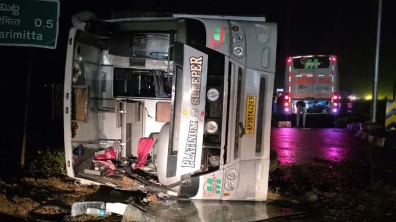 అక్షరటుడే, వెబ్డెస్క్ : Nellore District | ఆంధ్రప్రదేశ్ (Andhra Pradesh)లో బస్సు ప్రమాదాలు వరుసగా జరుగుతున్న నేపథ్యంలో, ఉమ్మడి నెల్లూరు జిల్లాలో మరో ప్రమాదం చోటుచేసుకుంది. పెళ్లకూరు మండలం (Pellakur Mandal) దొడ్లవారిమిట్ట సమీపంలోని జాతీయ రహదారిపై శుక్రవారం తెల్లవారుజామున ప్రైవేట్ ట్రావెల్స్ బస్సు అదుపు తప్పి బోల్తా పడింది.