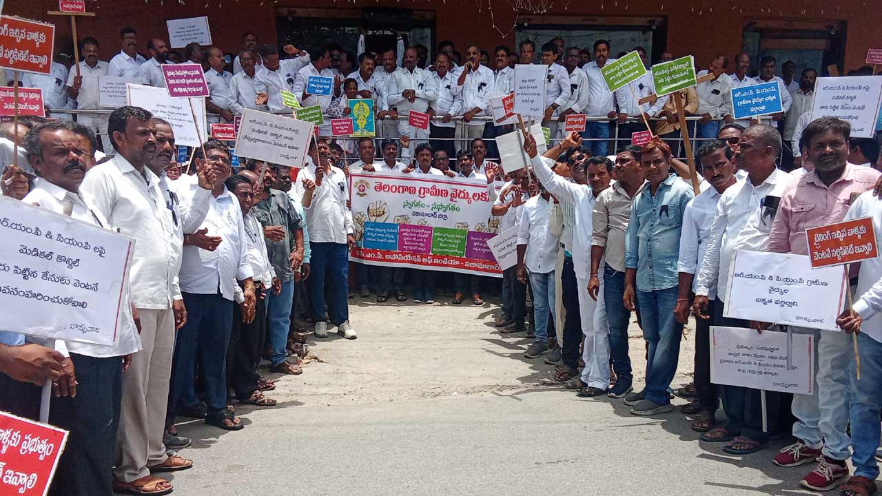 దివంగత సీఎం రాజశేఖర్ రెడ్డి (Late CM Rajasekhar Reddy) హయాంలో కాంగ్రెస్ ప్రభుత్వం (Congress Government) గ్రామీణ వైద్యులకు పారా మెడికల్ శిక్షణ (Paramedical training) ఇచ్చారని వివరించారు. శిక్షణ పూర్తయిన గ్రామీణ వైద్యులకు సర్టిఫికెట్లు ఇచ్చి తమను గుర్తించాలని వారు కోరారు. కార్యక్రమంలో జిల్లా అధ్యక్షుడు రాజేశ్వర్, బోధన్, ఆర్మూర్ డివిజన్ల అధ్యక్షులు రాజగోపాల్ చారి, సాయిలు, సంఘం ప్రతినిధులు చంద్రశేఖర్ తదితరులు పాల్గొన్నారు.