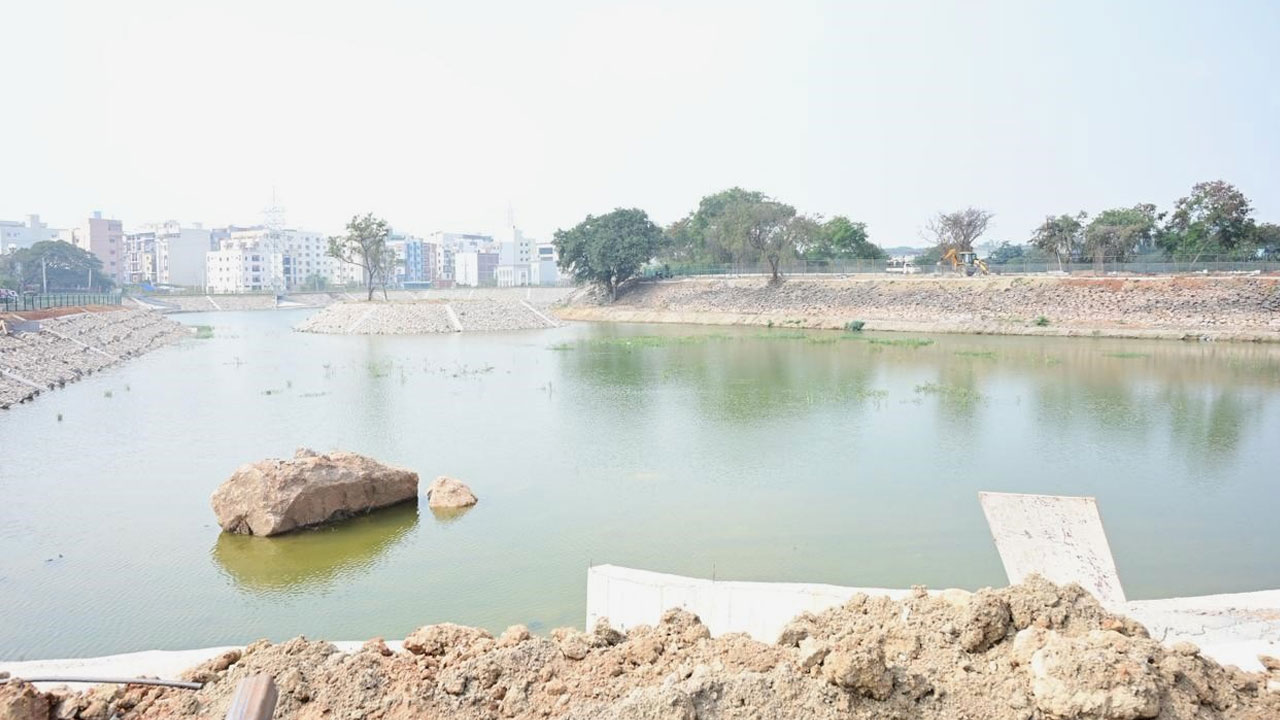 ప్రస్తుతం చెరువు వద్ద పనులు కొనసాగుతున్నాయి. హైడ్రా కమిషనర్ మంగళవారం చెరువు పనులను పరిశీలించారు. చుట్టూ బండ్తో పాటు.. ఇన్లెట్లు, ఔట్ లెట్ల నిర్మాణాన్ని తనిఖీ చేశారు. చెరువుకు మూడు వైపులా నిర్మిస్తున్న ప్రవేశ మార్గాలను పరిశీలించారు. స్థానికంగా ఉన్నవారు సులభంగా చెరువు చెంతకు చేరేలా చూడాలని సూచించారు. నిజాంల కాలంలో ఈ చెరువుకు ఎంతో చరిత్ర ఉందని.. దానిని పునరావృతం చేసేలా.. చుట్టూ ఔషధగుణాలున్న మొక్కలతో పాటు.. చల్లటి నీడనిచ్చే చెట్లను నాటాలన్నారు. అన్ని వయసుల వారూ సులభంగా నడిచేలా వాకింగ్ ట్రాక్ (Walking Track)లు ఏర్పాటు చేయాలని ఆదేశించారు. లైటింగ్ చెరువు చుట్టూ ఉండేలా చూడాలన్నారు. పిల్లల కోసం ప్లే ఏరియాలు, వృద్ధుల కోసం సీటింగ్ జోన్లు, ఓపెన్ జిమ్లు, పార్కులు వంటి సౌకర్యాలు త్వరగా పూర్తి చేయాలన్నారు.
