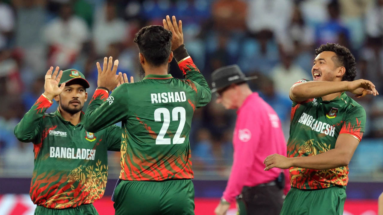 బంగ్లాదేశ్ బౌలర్లలో టస్కిన్ అహ్మద్ , తంజీమ్ హసన్ షకీబ్ , రిషద్ హొస్సేన్ చెరో 2 వికెట్లు పడగొట్టారు. లక్ష్యాన్ని బంగ్లాదేశ్(Bangladesh) 17.4 ఓవర్లలో 3 వికెట్లు కోల్పోయి చేధించింది. కెప్టెన్ లిటన్ దాస్ 44 బంతుల్లో హాఫ్ సెంచరీ పూర్తి చేసి 95 పరుగుల కీలక భాగస్వామ్యం నమోదు చేశాడు. టౌహిడ్ హృదయ్ (36 బంతుల్లో 35 నాటౌట్) చివరి వరకు నిలిచి విజయాన్ని పూర్తి చేశాడు. ఓపెనర్లు పర్వేజ్ హోస్సేన్ (19), తంజిద్ హసన్ (14) త్వరగానే ఔటైనప్పటికీ, లిటన్-హృదయ్ జోడీ జట్టుని విజయపథంలో నడిపించారు. లిటన్ దాస్ బౌల్డ్ అవ్వగానే భాగస్వామ్యానికి తెర పడినా, టౌహిడ్ హృదయ్ – జాకెర్ అలీ (0 నాటౌట్) జట్టును విజయానికి చేర్చారు.