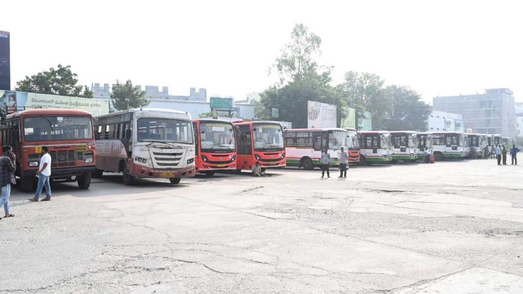 నగరంలోని ఆర్టీసీ బస్టాండ్లో నిలిచిపోయిన బస్సులు