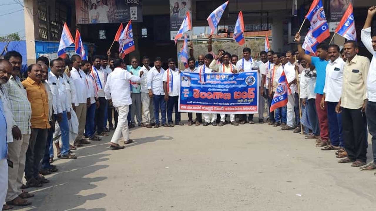 బీసీ జేఏసీ(BC JAC) ఆధ్వర్యంలో ఆల్పార్టీ ఆధ్వర్యంలో బస్డిపో ఎదుట ఆందోళన చేశారు. కాంగ్రెస్ పార్టీ ఎమ్మెల్సీ బల్మూరి వెంకట్, టీపీసీసీ కార్యదర్శి రాంభూపాల్, కాంగ్రెస్ ప్రతినిధులు పంచరెడ్డి చరణ్, సీనియర్ జర్నలిస్ట్ జమాల్పూర్గణేష్, బీసీ జేఏసీ కన్వీనర్ పోతన్కర్ లక్ష్మీనారాయణ, మాజీ జడ్పీ ఛైర్మర్ దాదన్నగారి విఠల్రావు, పీడీఎస్యూ ప్రతినిధి సుధాకర్, ఎనుగందుల మురళి, సీపీఐ ప్రతినిధి సుధాకర్, ఓమయ్య, ఏఐఎస్ఎఫ్ రఘురాం, యెండల ప్రదీప్, బీజేపీ ప్రతినిధులు స్వామి యాదవ్ తదితరులు పాల్గొన్నారు.