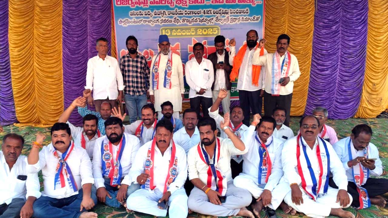 ఈ సందర్భంగా వక్తలు మాట్లాడుతూ.. బీసీలకు విద్య, ఉద్యోగ (education), రాజకీయ రంగాల్లో 42శాతం రిజర్వేషన్లు పెంచడానికి పార్లమెంటులో రాజ్యాంగ సవరణ చేసి 9వ షెడ్యూల్లో చేర్చాలనే ప్రధాన డిమాండ్తో బీసీల ధర్మ పోరాట దీక్ష చేపట్టామన్నారు. రిజర్వేషన్లు ఎవరిచ్చే భిక్ష కాదని, ఇది తమ హక్కు అని పేర్కొన్నారు.