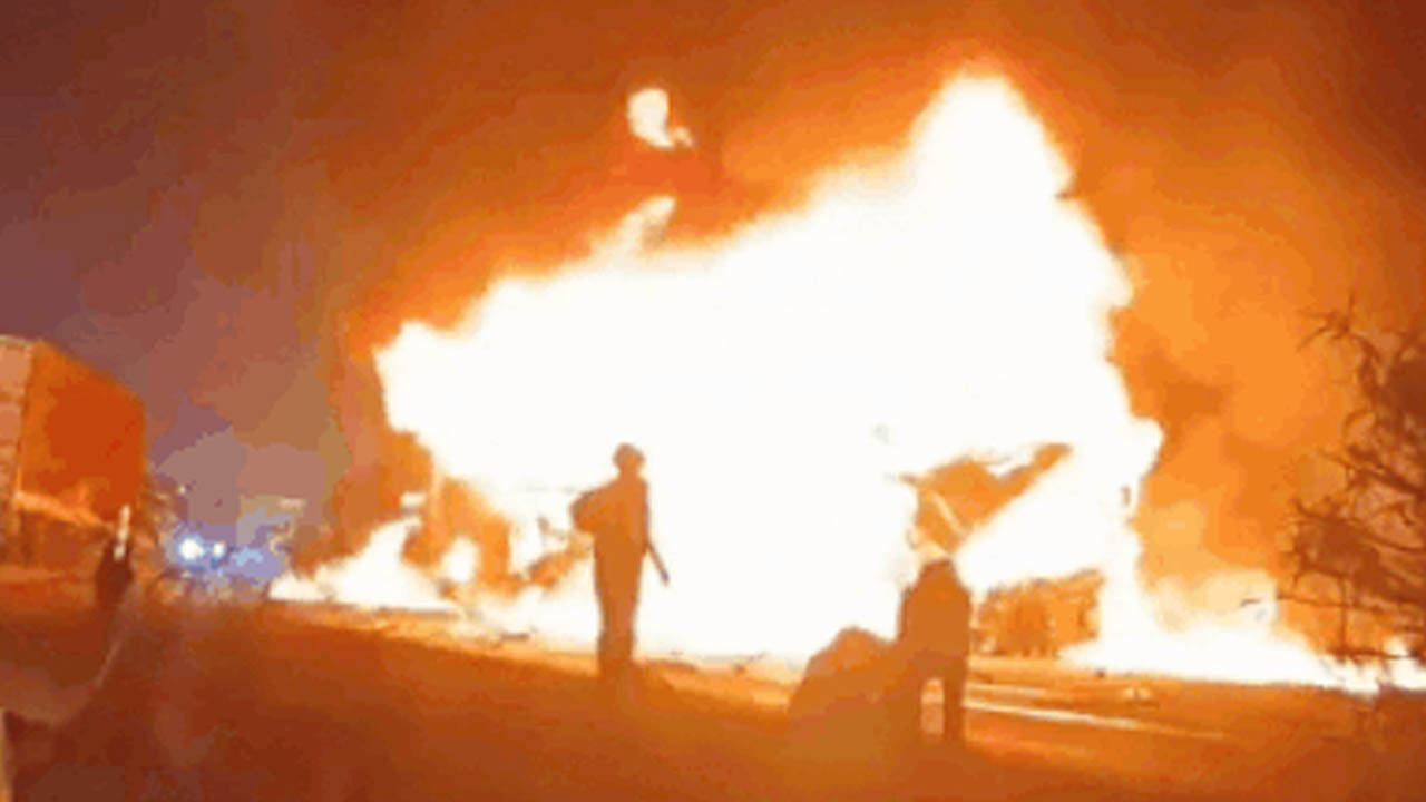 VIDEO | Chitradurga, Karnataka: Over 10 people are feared dead in a lorry-bus collision on National Highway 48 near Gorlathu village in Hiriyur taluk.