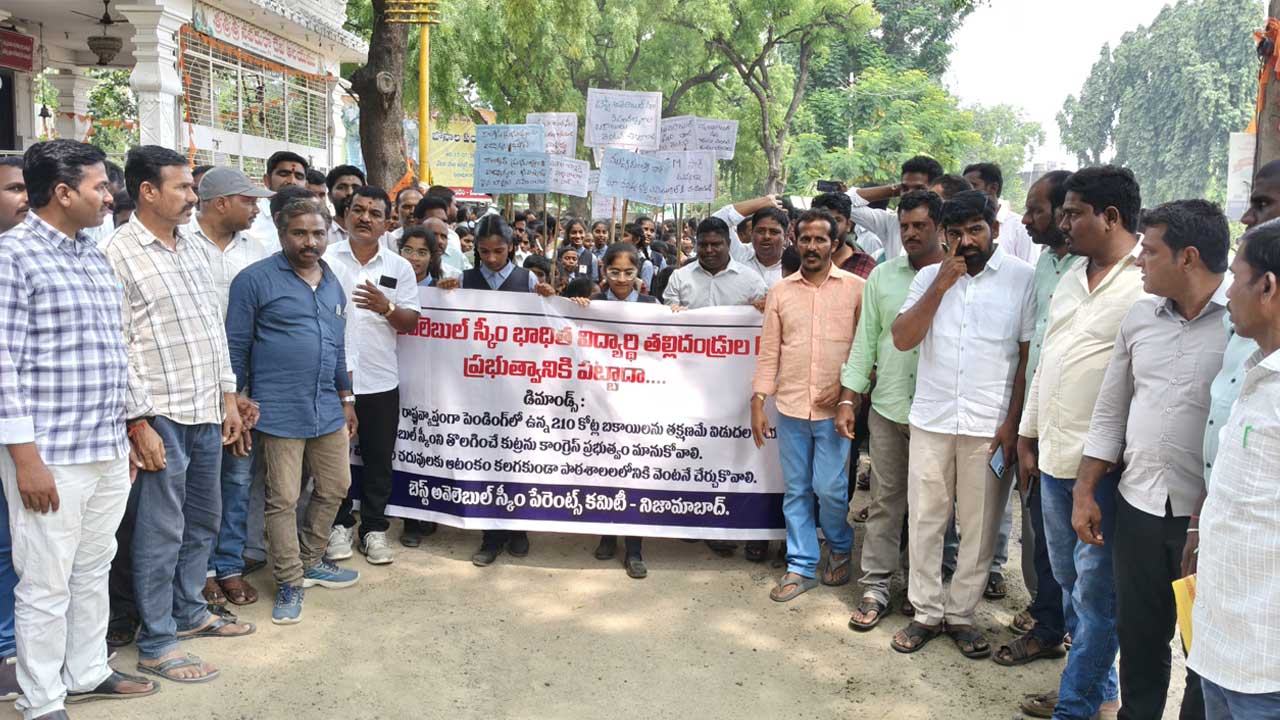 అక్షరటుడే, ఇందూరు: Best Available Scheme | జిల్లాలో బెస్ట్ అవైలబుల్ కింద అభ్యసిస్తున్న విద్యార్థులకు నిధులను వెంటనే విడుదల చేయాలని తల్లిదండ్రులు, విద్యార్థి సంఘ నాయకులు డిమాండ్ చేశారు. జిల్లా కేంద్రంలోని ఎన్టీఆర్ చౌరస్తాలో (NTR Chowrastha) సోమవారం నిరసన వ్యక్తం చేశారు.