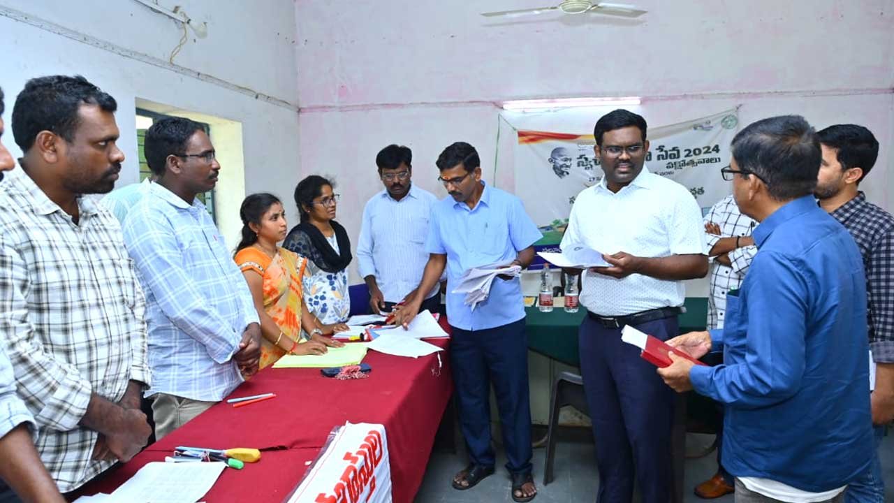 అక్షరటుడే ఇందూరు: Bhubarathi | భూ సమస్యల శాశ్వత పరిష్కారమే ధ్యేయంగా ప్రభుత్వం భూభారతి చట్టాన్ని తీసుకొచ్చిందని కలెక్టర్ రాజీవ్గాంధీ హనుమంతు (Collector Rajiv Gandhi Hanumanthu) పేర్కొన్నారు. భూభారతి రెవెన్యూ సదస్సుల్లో (Revenue Conference) భాగంగా బుధవారం జక్రాన్పల్లి (jakranpally) మండలం మాదాపూర్ (madapur), ముప్కాల్ మండలం, నల్లూరు, కిసాన్ నగర్ గ్రామాల్లో సదస్సుల్లో కలెక్టర్ పాల్గొన్నారు. ఈ సందర్భంగా రైతులు ఎదుర్కొంటున్న భూసంబంధిత సమస్యల గురించి అడిగి తెలుసుకున్నారు. రిజిస్ట్రేషన్ ప్రక్రియ, హెల్ప్డెస్క్, దరఖాస్తుల స్వీకరణ కౌంటర్ వద్ద సదుపాయాలు, సిబ్బంది పనితీరును పరిశీలించారు. ఒకే దరఖాస్తులో రైతులు రెండు, మూడు రకాల భూసమస్యలను పేర్కొనవచ్చని సూచించారు. దరఖాస్తులను క్షుణ్ణంగా పరిశీలిస్తూ ఆన్లైన్లో ఎంట్రీ చేయాలని సిబ్బందికి ఆదేశించారు. సదస్సులో ఆర్మూర్ ఆర్డీవో రాజా గౌడ్, తహశీల్దార్ కిరణ్, రెవెన్యూ అధికారులు, సిబ్బంది పాల్గొన్నారు.