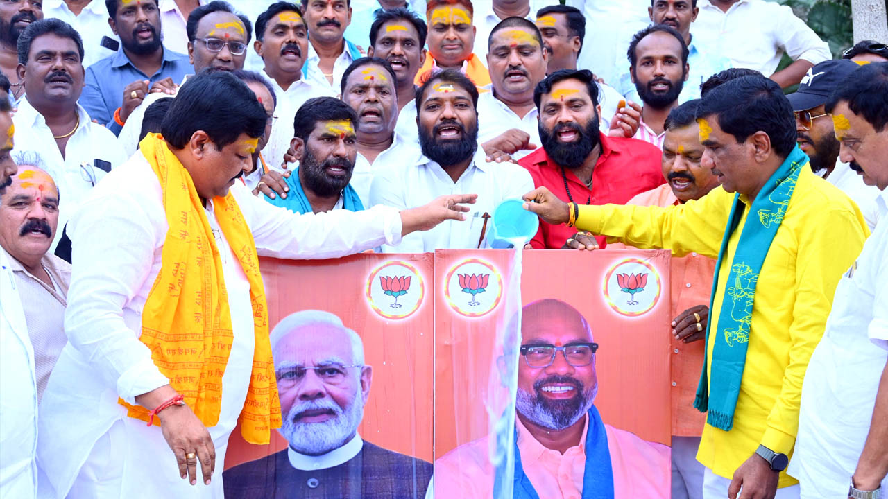 పసుపు బోర్డు కార్యాలయానికి భవనం మంజూరు కావడంతో బుధవారం బీజేపీ నాయకులు (BJP leaders) శ్రద్ధానంద్ గంజ్ లో సంబరాలు జరిపారు. ప్రధాని మోదీ, ఎంపీ అరవింద్ చిత్రపటాలకు క్షీరాభిషేకం చేశారు. ఎంపీ కృషి వల్లే కార్యాలయం వచ్చిందని వారు ప్రశంసించారు. కార్యక్రమంలో జిల్లా అధ్యక్షుడు దినేష్ కులాచారి, రాష్ట్ర నాయకుడు మోహన్ రెడ్డి, జిల్లా నాయకులు న్యాలం రాజు, నాగోల్ల లక్ష్మీనారాయణ, స్రవంతి రెడ్డి, మాజీ కార్పొరేటర్లు తదితరులు పాల్గొన్నారు.