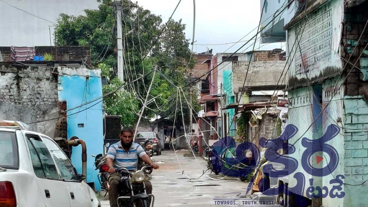 నగరంలోని (Nizamabad City) పూలాంగ్ (Pulang) ప్రాంతంలో కరెంటు తీగలు తెగిపోయి రోడ్లపై పడ్డాయి. రాత్రి తీగలు రోడ్డుపై పడ్డప్పటికీ విద్యుత్ అధికారులు ఎవరూ స్పందించలేదని స్థానికులు ఆగ్రహం వ్యక్తం చేస్తున్నారు. నిన్నటి నుంచి విద్యుత్ లేక అవస్థలు పడుతున్నామని వాపోయారు. అధికారులు స్పందించి విద్యుత్ పునరుద్ధరించాలని కోరారు.