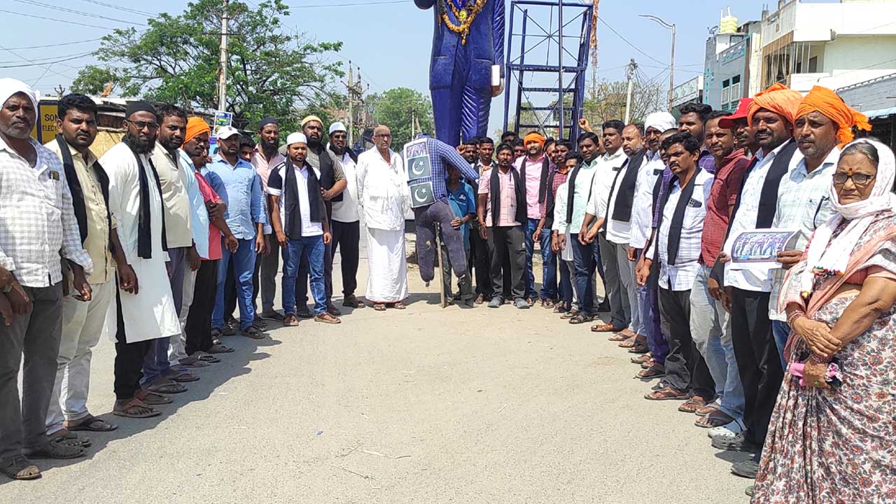 అక్షరటుడే,కోటగిరి: Kotagiri | మండల కేంద్రంలోని అంబేడ్కర్ చౌరస్తా Ambedkar chowrastha వద్ద వివిధ పార్టీల నాయకులు ఉగ్రవాదుల దిష్టిబొమ్మను దహనం చేశారు. ఈ సందర్భంగా వారు మాట్లాడుతూ కశ్మీర్లో ఉగ్రదాడిని(Terrorist attack) తీవ్రంగా ఖండిస్తున్నామన్నారు. అనంతరం రెండు నిమిషాలు మౌనం పాటించి మృతులకు నివాళులర్పించారు. కేంద్రం తక్షణమే ఉగ్రవాదులను పట్టుకుని కఠినంగా శిక్షించాలని డిమాండ్ చేశారు. కార్యక్రమంలో వివిధ పార్టీల నాయకులు, ప్రజలు పాల్గొన్నారు.