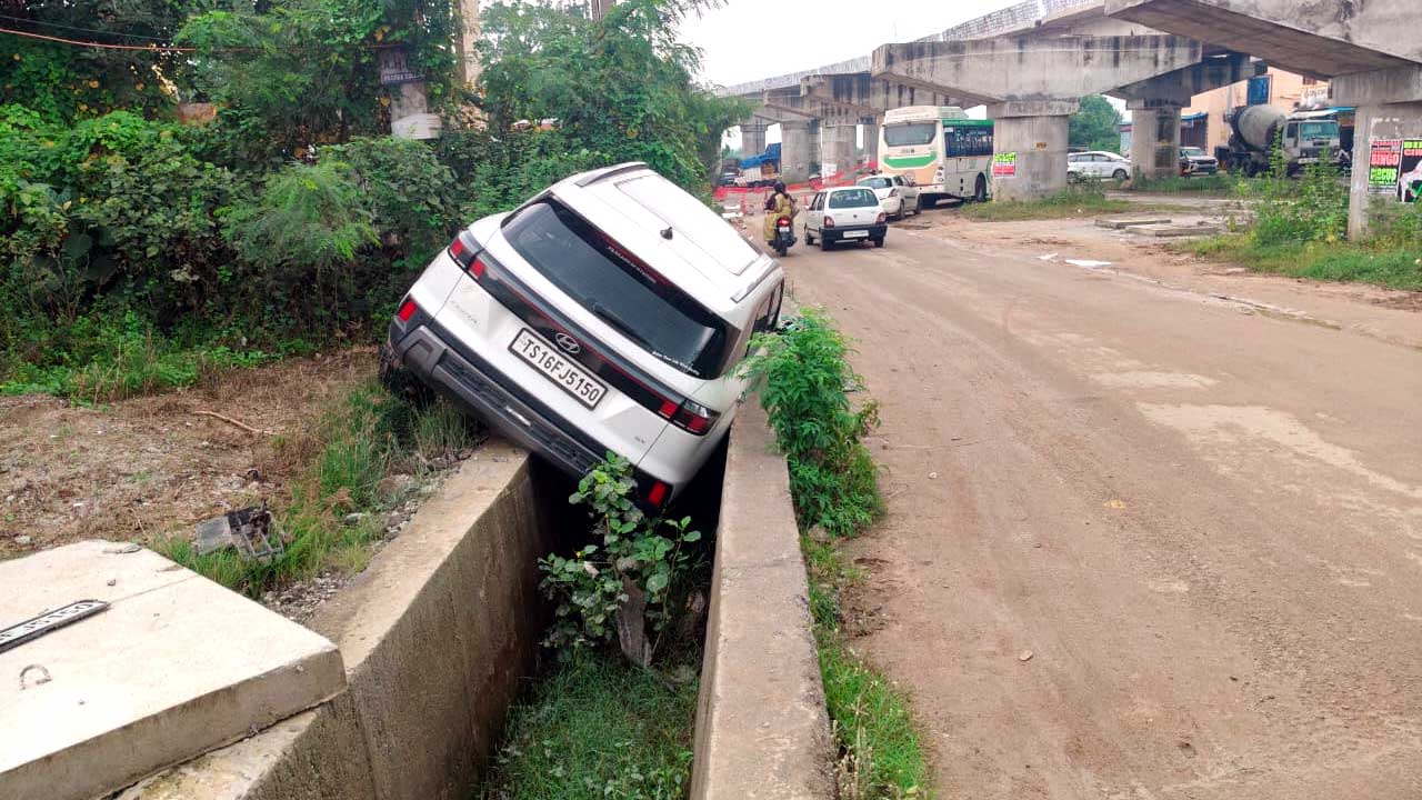 సాయిబాబా ఆలయం వద్ద ఆర్వోబీ పనులు (ROB work) జరుగుతున్న విషయం తెలిసిందే. దీంతో రోడ్డు గుంతలమయంగా మారింది. ఈ క్రమంలో శనివారం ఉదయం ఓ కారు అదుపు తప్పి రోడ్డు పక్కనే ఉన్న డ్రెయినేజీలో పడిపోయింది. ఎయిర్ బ్యాగ్స్ ఓపెన్ కావడంతో కారులోని వ్యక్తికి ఎలాంటి గాయాలు కాలేదు.