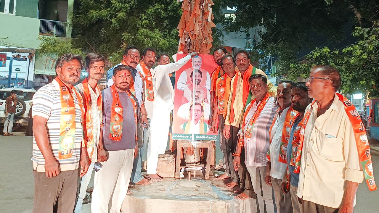 అక్షరటుడే, ఇందూరు: Caste census | దేశవ్యాప్తంగా కులగణన చేయాలన్న కేంద్రప్రభుత్వ central government నిర్ణయం చారిత్రాత్మకమని బీజేపీ ఓబీసీ మోర్చా BJP OBC Morcha రాష్ట్ర అధికార ప్రతినిధి మాదాసు స్వామియాదవ్ అన్నారు. ఈ సందర్భంగా శుక్రవారం ప్రధాని నరేంద్రమోదీ Prime Minister Narendra Modi చిత్రపటానికి పాలాభిషేకం నిర్వహించారు. అనంతరం మాట్లాడుతూ.. కులగణన caste census నిర్ణయం ఘనత తమదేనని కాంగ్రెస్ నాయకులు చెప్పుకోవడం సిగ్గుచేటన్నారు. అంతేగాక, కులగణనకు తెలంగాణను మోడల్గా తీసుకోవాలని చెప్తున్న సీఎం రేవంత్ రెడ్డి CM Revanth Reddy, రాష్ట్రంలో చేసిన సర్వేపై ఆ పార్టీ నాయకుల్లోనే అసంతృప్తి ఉందన్నారు. పేదరికం నిర్మూలన కోసమే బీజేపీ ప్రభుత్వం కులగణనకు నిర్ణయించిందన్నారు. కార్యక్రమంలో మండల అధ్యక్షుడు విజయ్, తదితరులు పాల్గొన్నారు.