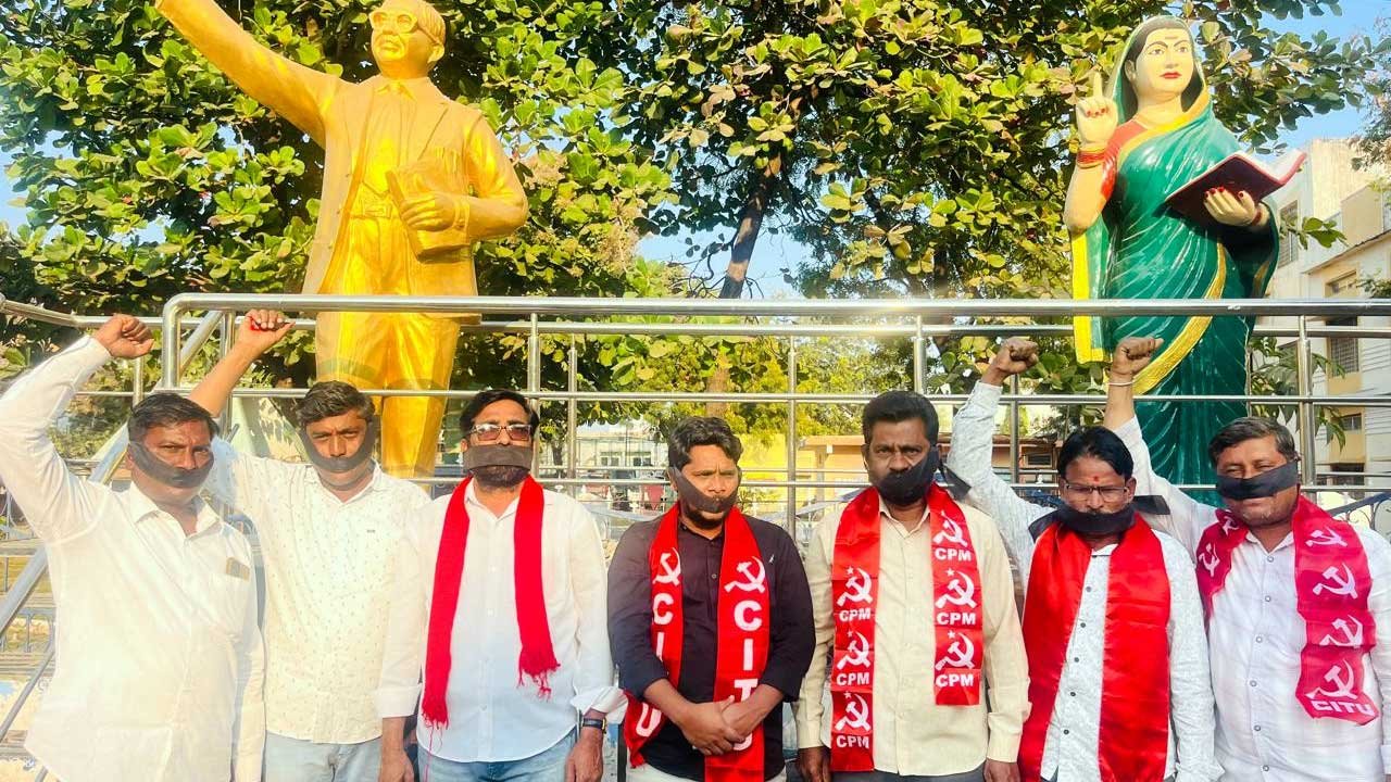 అక్షరటుడే, కామారెడ్డి: Labour Laws | కేంద్ర ప్రభుత్వం కార్మికులను మోసం చేస్తోందని సీఐటీయూ, రైతు సంఘాల (CITU and farmers associations) నాయకులు ఆరోపించారు. సీఐటీయూ, రైతు సంఘాల ఆధ్వర్యంలో జిల్లా కేంద్రంలోని అంబేద్కర్ విగ్రహం ముందు నోటికి నల్ల గుడ్డలు ధరించి నిరసన తెలిపారు.