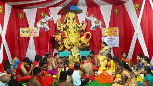 అక్షరటుడే, ఎల్లారెడ్డి : పట్టణ కేంద్రంలోని ముత్యాల పోచమ్మ ఆలయంలో చైతన్య యూత్, హిందూ యువసేన ఆధ్వర్యంలో ఏర్పాటు చేసిన దుర్గామాత మండపంలో అమ్మవారు ఆదివారం మహచండీ దేవి రూపంలో దర్శనమిచ్చారు. ఈ సందర్భంగా ప్రత్యేక పూజలు చేశారు. కార్యక్రమంలో ప్యాలాల రాములు, సంగమేశ్వర్, పప్పు వెంకట్, రమేష్, ప్రభాకర్, శివప్రసాద్, విద్యాసాగర్, నవీన్, అర్జున్ గౌడ్, సాయి, భాను, అర్జున్, ఫణి, కిరణ్, రాహుల్, సూర్య, కపిల్, తరుణ్, సాయిరాజ్, భాస్కర్, మధు, చందు, సంజయ్, ఈశ్వర్, వినీత్, నాగబాబు, సన్నీ, నిహాల్ పాల్గొన్నారు.