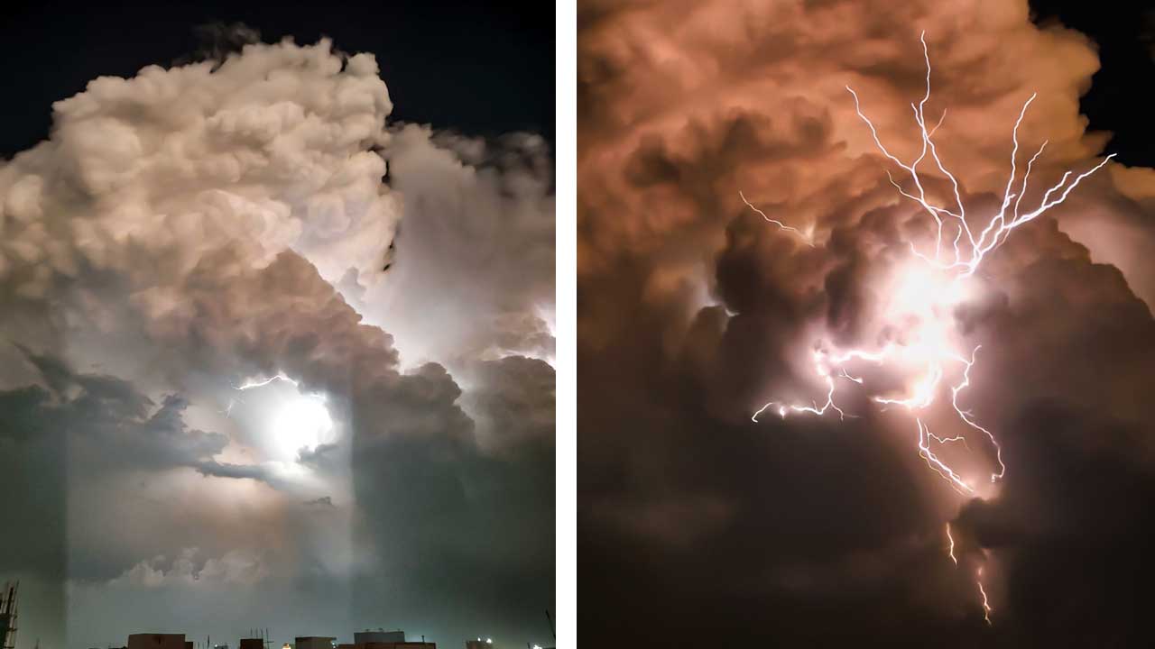 అక్షరటుడే, వెబ్డెస్క్: Hyderabad | ఈ చిత్రాన్ని చూస్తే ‘మేఘం కరిగెను.. మెరుపే మెరిసెను.. చినుకె కురిసెను..’ అంటూ ఓ కవి రాసిన గుర్తొస్తుంది. హైదరాబాద్ నగరంలో hyderabad city గురువారం సాయంత్రం దట్టమైన మేఘాలు కమ్ముకున్నాయి. ఉరుములు, మెరుపుల కూడిన వర్షం rains in Hyderabad కురిసింది. అయితే పలుచోట్ల వచ్చిన మెరుపులు ఆకర్షించాయి. ఈ సుందర దృశ్యాలు నగరవాసులను ఆకట్టుకున్నాయి.