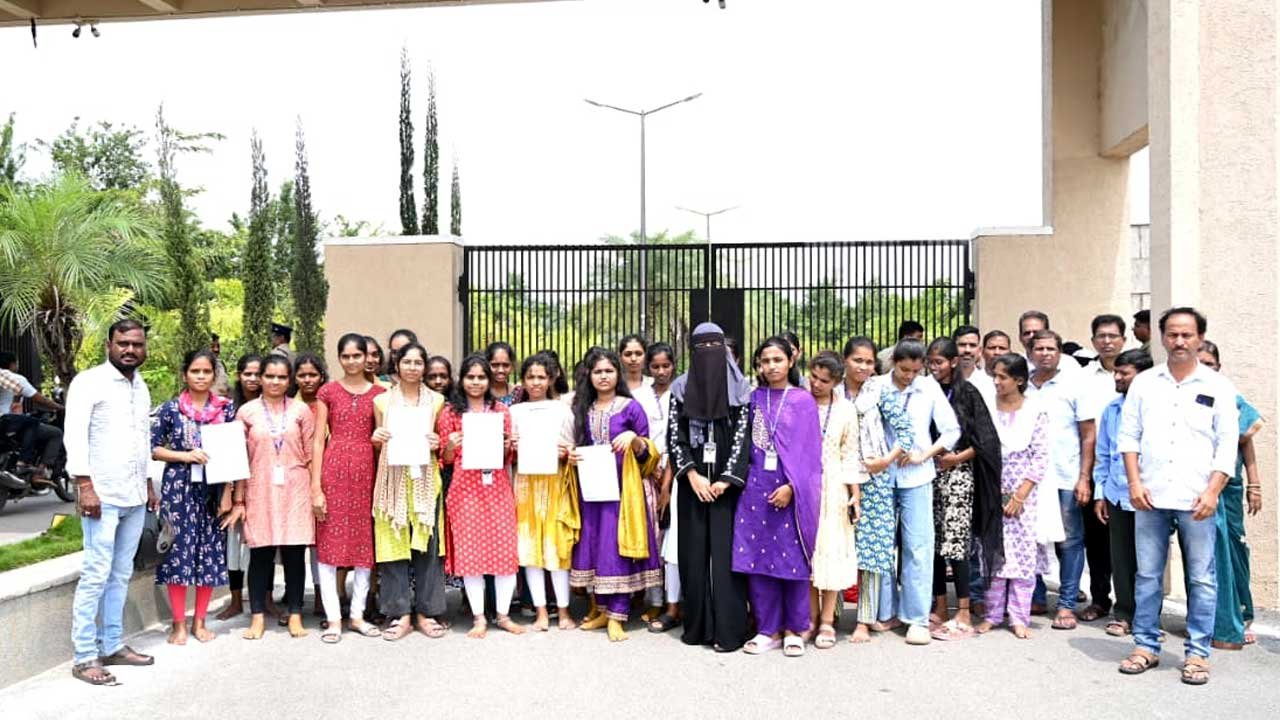 ఈ సందర్భంగా వారు మాట్లాడుతూ.. తాము కళాశాలలో మొదటి సంవత్సరంలో అడ్మిషన్ పొందినప్పుడు ఫీజు రీయింబర్స్ మెంట్ (fee reimbursement) రూ.15,780 పోను, కళాశాల ఫీజు రూ. 880 చెల్లించామన్నారు. అయితే ఈ సంవత్సరం ఫీజు రీయింబర్స్ మెంట్, కళాశాల ఫీజు, బిల్డింగ్ డెవలప్ మెంట్ ఫీజు పేరుతో మొత్తం రూ.24 వేలు చెల్లించాలంటూ యాజమాన్యం ఒత్తిడి తెస్తుందన్నారు. పేద విద్యార్థులమైన తాము అంత ఫీజు చెల్లించలేమని వాపోయారు. తమ సమస్యను పరిష్కరించాలని కలెక్టర్ ను కోరారు. వినతి పత్రం అందించిన వారిలో 50 మంది విద్యార్థులు ఉన్నారు.