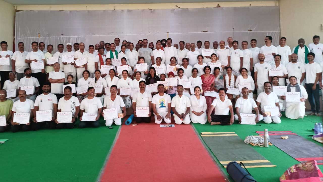 ముందుగా శ్లోకాలు పఠించిన తర్వాత 108 సూర్య నమస్కారాలు చేసి ఆ సూర్య భగవానుడికి సమర్పించారు. అనంతరం బస్వారెడ్డి మాట్లాడుతూ.. యోగా చేసేవారికి అనారోగ్యాలు దూరంగా ఉంటాయన్నారు. యోగా సాధకులకు సైబర్ నేరాల గురించి వివరించారు. గుర్తు తెలియని వ్యక్తుల నుంచి వచ్చే మెసెజ్ల విషయంలో అప్రమత్తంగా ఉండాలన్నారు. కార్యక్రమంలో జిల్లా యోగాసన స్పోర్ట్స్ అసోసియేషన్ అధ్యక్షుడు ఎక్కండ ప్రభాకర్, గౌరవ అధ్యక్షుడు యోగా రాంచందర్, సలహాదారులు జిలకర కిషన్, కార్యదర్శి బాల్ శేఖర్, కోశాధికారి భూమా గౌడ్, సంయుక్త కార్యదర్శి సంగీత, రెడ్క్రాస్ రాష్ట్ర కార్యవర్గ సభ్యుడు తోట రాజశేఖర్, పతంజలి ప్రతినిధులు సాయన్న, బుచ్చన్న తదితరులు పాల్గొన్నారు.