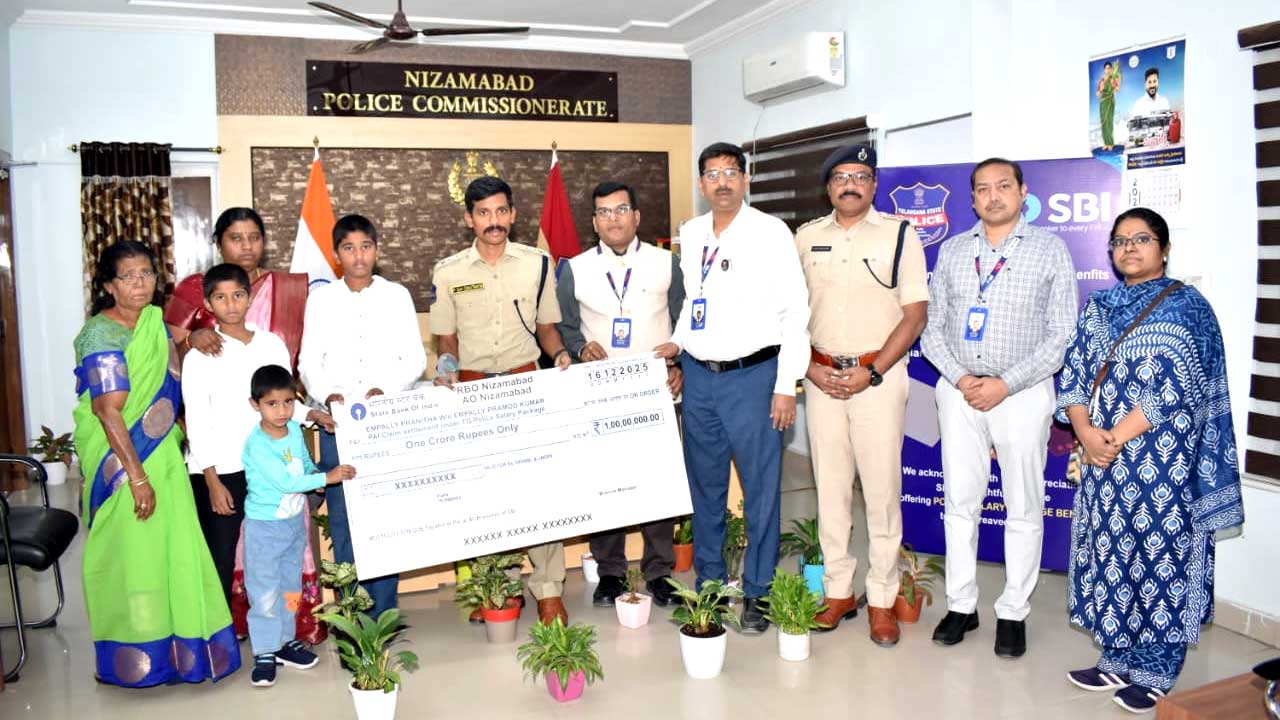 అక్షరటుడే, నిజామాబాద్ సిటీ: Nizamabad CP | కానిస్టేబుల్ ప్రమోద్ కుమార్ (Constable Pramod Kumar) అక్టోబర్ 10న విధి నిర్వహణలో రౌడీషీటర్ చేతిలో హతమైన విషయం తెలిసిందే. పోలీస్ సాలరీ ప్యాకేజ్ (Police Salary Package) వర్సనల్ యాక్సిడెంటల్ ఇన్సూరెన్స్ క్లెయిమ్ రూపంలో రూ.కోటి చెక్కు మంజూరైంది.