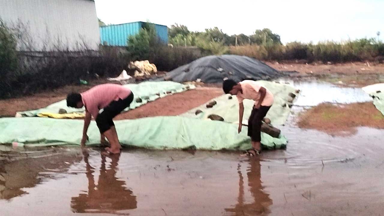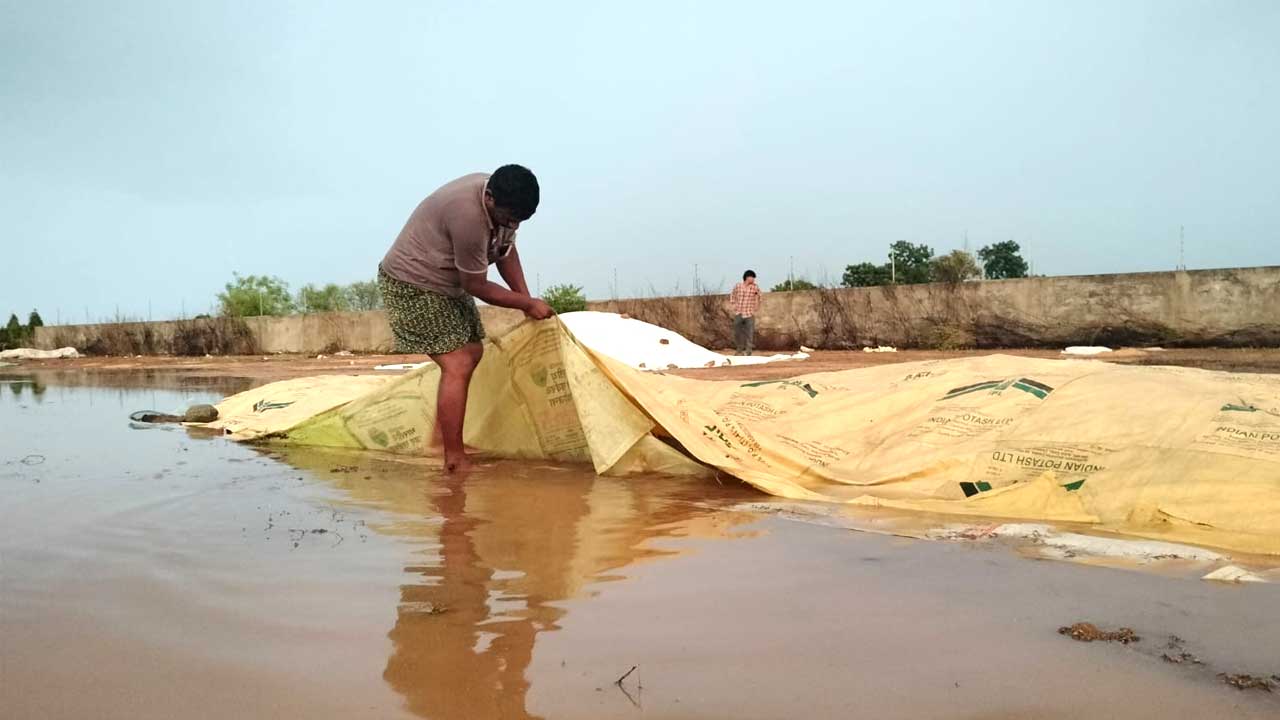 అకస్మాత్తుగా కురిసిన వర్షం కారణంగా అన్నదాతలు ఆయోమయానికి గురయ్యారు. ధాన్యం కొనుగోలు కేంద్రాల్లో ఆరబెట్టిన ధాన్యం తడిసింది. కేంద్రాల్లో ధాన్యం ఆరబెట్టి టార్పాలిన్లు కప్పినప్పటికీ ధాన్యంలోకి నీళ్లు చేరాయి. అలాగే రోడ్లపై ఆరబెట్టిన ధాన్యం వర్షం ధాటికి కొట్టుకుపోయింది. దీంతో ధాన్యాన్ని కాపాడుకునేందుకు రైతులు ఆగమేఘాల మీద ఏర్పాట్లు చేసుకున్నారు.