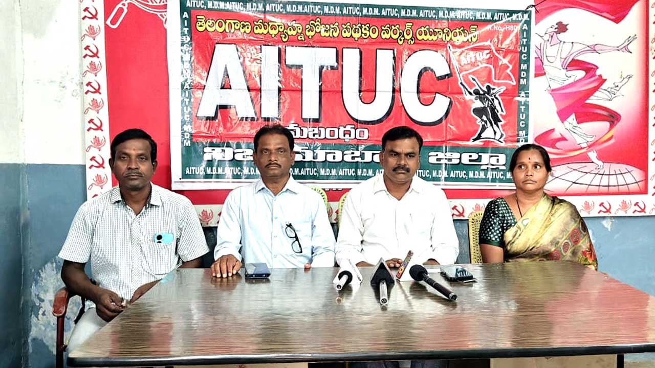 అక్షరటుడే, ఇందూరు: Midday Meal Scheme | మధ్యాహ్న భోజన కార్మికులపై జిల్లా విద్యాశాఖ అధికారి (District Education Officer) ఒత్తిడి పెంచడం మానుకోవాలని ఏఐటీయూసీ జిల్లా ప్రధాన కార్యదర్శి ఓమయ్య అన్నారు. జిల్లా కేంద్రంలోని ఏఐటీయూసీ కార్యాలయంలో గురువారం విలేకరుల సమావేశం నిర్వహించారు.