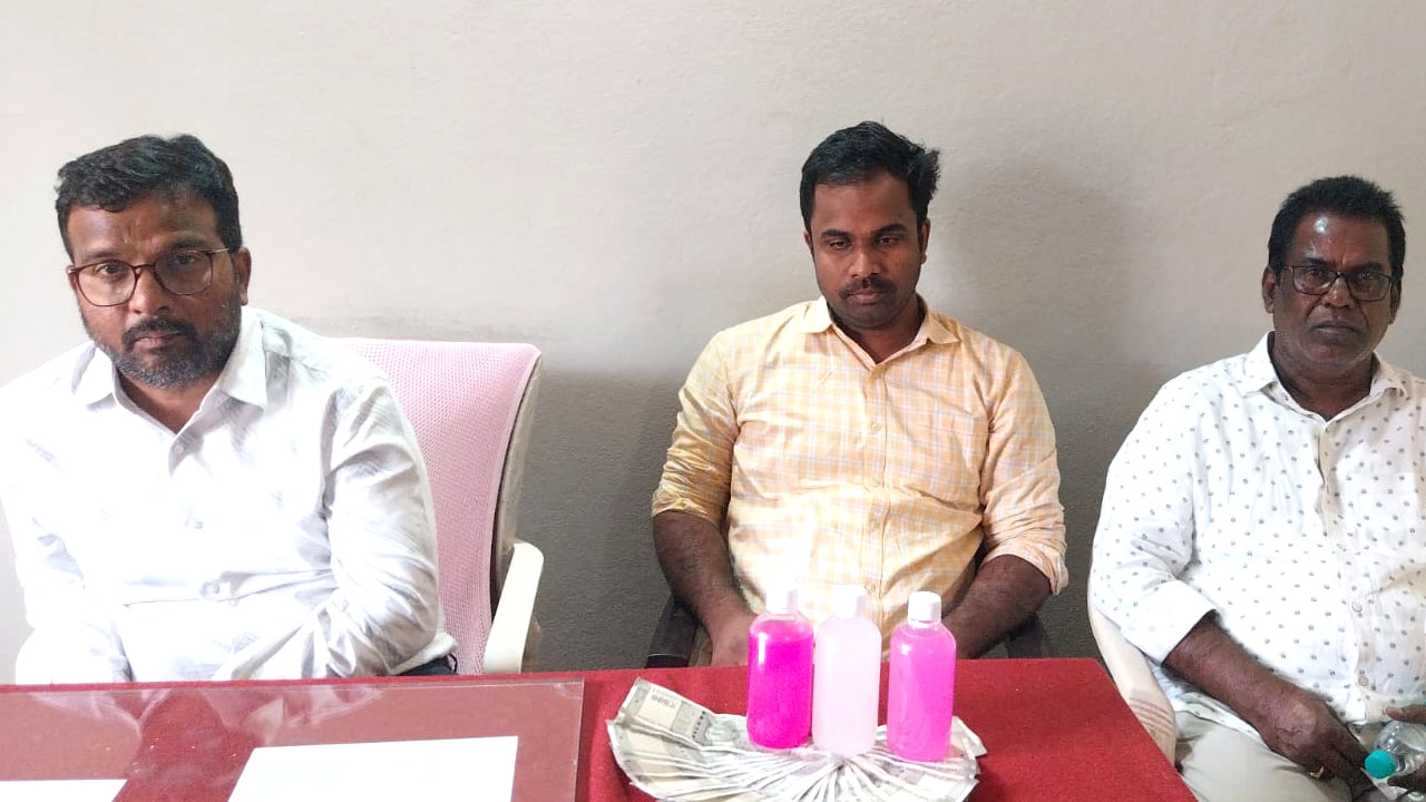 సంగారెడ్డి (Sangareddy) జిల్లా జహీరాబాద్లో జాతీయ పెట్టుబడులు, తయారీ మండలం (NIMZ) కోసం గతంతో రైతుల నుంచి భూమి సేకరించారు. ఇందుకు సంబంధించి రైతులకు ప్రభుత్వం పరిహారం విడుదల చేసింది. అయితే పరిహారం చెక్కులు మంజూరు చేసేందుకు నిమ్జ్ ప్రత్యేక డిప్యూటీ కలెక్టర్ రాజారెడ్డి (Deputy Collector Rajareddy), డిప్యూటీ తహశీల్దార్ సతీశ్ లంచం డిమాండ్ చేశారు. ఈ మేరకు ఓ వ్యక్తికి మంజూరైన రూ.52,87,500 చెక్కును అందజేసేందుకు వీరు రూ.50 వేల లంచం అడిగారు. దీంతో సదరు రైతు ఏసీబీ అధికారులకు సమాచారం అందించాడు. ఈ క్రమంలో గురువారం రూ.15 వేల లంచం తీసుకుంటుండగా.. ఏబీసీ అధికారులు డిప్యూటీ కలెక్టర్ రాజారెడ్డి, డిప్యూటీ తహశీల్దార్ సతీశ్, డ్రైవర్ దుర్గయ్యను పట్టుకున్నారు. వారిపై కేసు నమోదు చేసి అరెస్ట్ చేసినట్లు తెలిపారు.