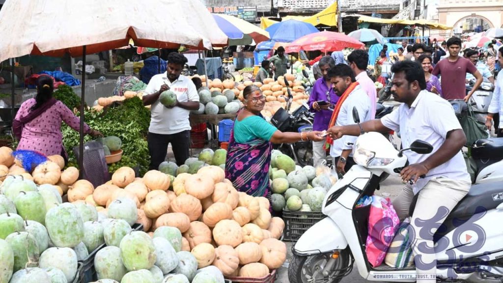 నిజామాబాద్ నగరంలో గుమ్మడికాయలు కొనుగోలు చేస్తున్నప్రజలు