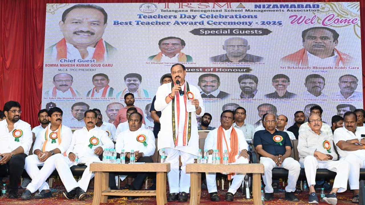 ఇకపై కొత్త ప్రైవేటు పాఠశాలలకు అనుమతి రావాలంటే సొంత మైదానం ఉండాల్సిందేనని పేర్కొన్నారు. అనంతరం ప్రైవేటు పాఠశాలల్లో బోధించే ఉత్తమ ఉపాధ్యాయులను సన్మానించారు. ఎమ్మెల్యేలు భూపతిరెడ్డి (Mla Bhupathi Reddy), ధన్పాల్ సూర్యనారాయణ గుప్తా (Mla Dhanpal) మాట్లాడారు. కార్యక్రమంలో రాష్ట్ర ఉర్దూ అకాడమీ ఛైర్మన్ తాహెర్ బిన్ హందాన్ (Taher Bin), గ్రంథాలయ సంస్థ జిల్లా ఛైర్మన్ అంతిరెడ్డి రాజిరెడ్డి (Anthireddy raji Reddy), మార్కెట్ కమిటీ ఛైర్మన్ ముప్పగంగారెడ్డి (Muppa Gangareddy), డీఈవో అశోక్ (DEO Ashok), ట్రస్మా రాష్ట్ర అధ్యక్షుడు శేఖర్, కోశాధికారి జయసింహా గౌడ్, జిల్లా అధ్యక్షుడు నిత్యానంద్, అన్ని మండలాల అధ్యక్ష కార్యదర్శులు పాల్గొన్నారు.