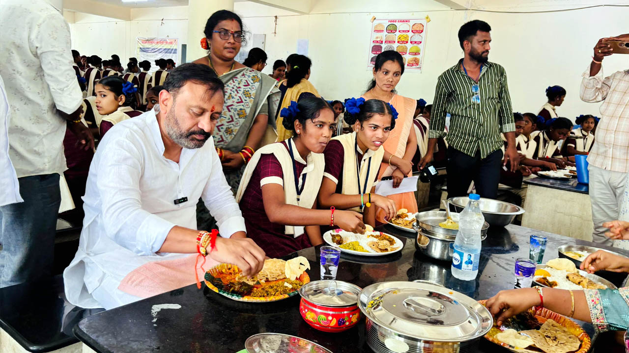 పాఠశాలకు విచ్చేసిన ఎమ్మెల్యేకు విద్యార్థులు ఘన స్వాగతం పలికారు. పాఠశాల ఆవరణలో మొక్కలు నాటి, విద్యార్థులతో కలిసి భోజనం చేశారు. విద్యార్థులతో ముచ్చటిస్తూ.. వారి సమస్యలు అడిగి తెలుసుకున్నారు. పాఠశాలలో సమస్యలు, మౌలిక సదుపాయాల గురించి ప్రిన్సిపాల్, సిబ్బందితో (principal and staff) చర్చించారు. ఈ సందర్భంగా ఆయన మాట్లాడుతూ విద్యార్థులకు నాణ్యమైన విద్యా, భోజనం అందించాలని సూచించారు.