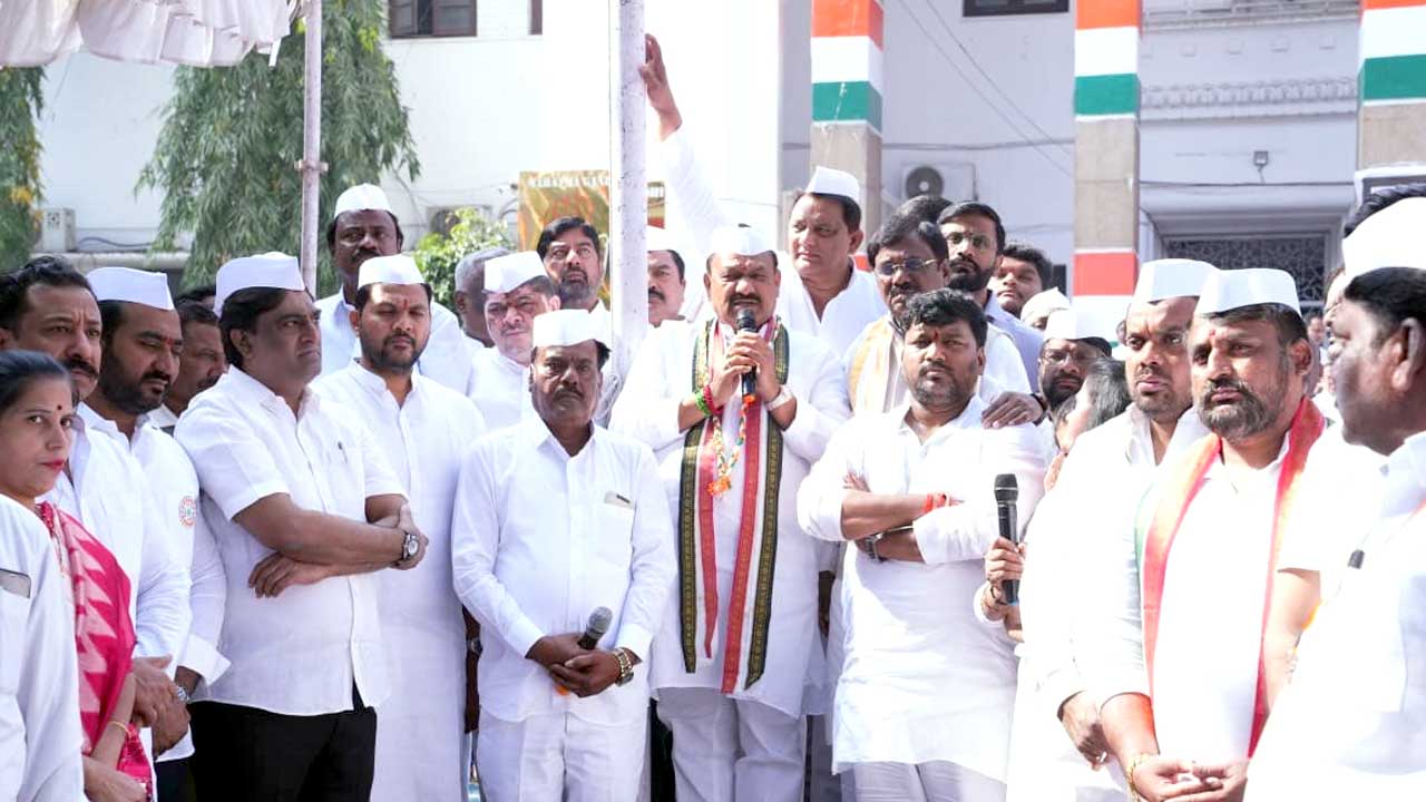 అక్షరటుడే, వెబ్డెస్క్: PCC Chief Mahesh Goud | హైదరాబాద్లోని గాంధీభవన్లో (Gandhi Bhavan) ఆదివారం కాంగ్రెస్ వ్యవస్థాపక దినోత్సవం ఘనంగా నిర్వహించారు. మహాత్మాగాంధీ, సర్దార్ వల్లభాయ్ పటేల్ చిత్రపటాలకు పూలమాల సమర్పించి టీపీసీసీ చీఫ్ మహేశ్ కుమార్ గౌడ్ (TPCC Chief Mahesh Kumar Goud) నివాళులు అర్పించారు. అనంతరం కాంగ్రెస్ జెండా ఎగురవేశారు.