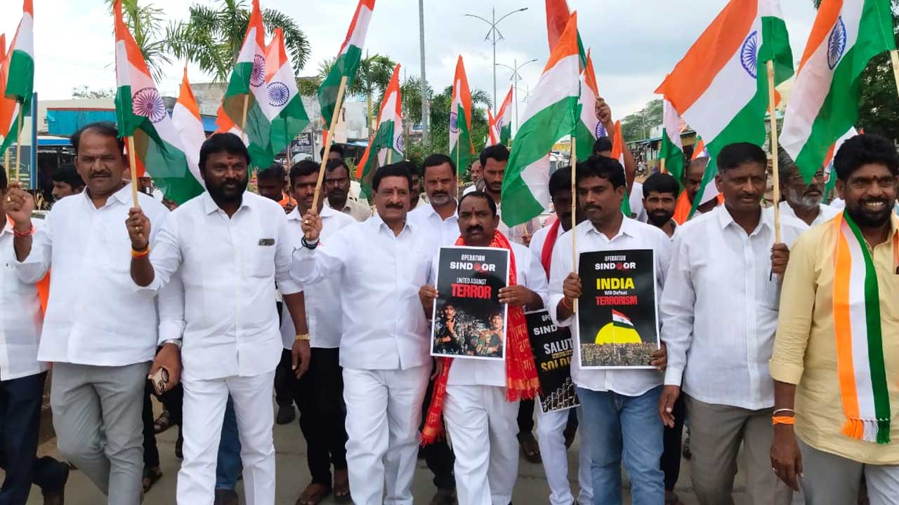 ఆపరేషన్ సింధూర్ (Operation Sindoor) విజయవంతం అయినందుకు సంకేతంగా తిరంగాయాత్ర నిర్వహించినట్లు బీజేపీ నాయకులు పేర్కొన్నారు. పెద్ద సంఖ్యలో ప్రజలు త్రివర్ణ పతకాలు చేత పట్టుకుని ర్యాలీలో పాల్గొన్నారు. మానవహారం నిర్వహించారు. అనంతరం బీజేపీ జిల్లా అధ్యక్షుడు నీలం రాజు, మాజీ మంత్రి నేరేళ్ల ఆంజనేయులు మాట్లాడుతూ.. దేశ ప్రజలు సాయుధ దళాలకు (Indian Army) రుణపడి ఉంటారన్నారు. యాత్రలో బీజేపీ నాయకులు మర్రి బాలకిషన్, దేవేందర్, రాజేష్, నర్సింలు, రాములు, మురళి తదితరులు పాల్గొన్నారు.