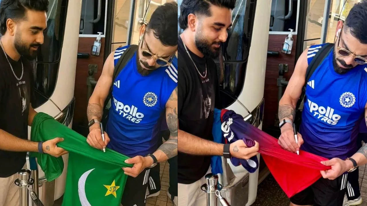 ప్రస్తుతం ఆస్ట్రేలియా పర్యటనలో ఉన్న కోహ్లీ ఫొటో ఒకటి సోషల్ మీడియాలో చక్కర్లు కొడుతోంది. అందులో ఆయన పాకిస్తాన్ జెర్సీ pakistan jersey పై సంతకం చేస్తున్నట్లు కనిపిస్తోంది.