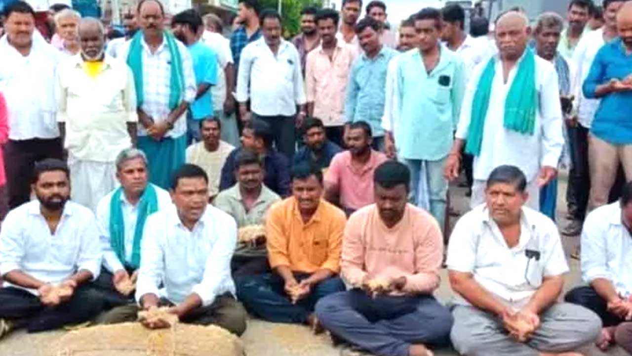 అక్షరటుడే, ఆర్మూర్: Paddy Centers | తడిసిన ధాన్యాన్ని తక్షణమే కొనుగోలు చేయాలని రైతులు డిమాండ్ చేశారు. ఈ మేరకు ఆర్మూర్ మున్సిపల్ (Armoor municipality) పరిధిలోని మామిడిపల్లి చౌరస్తాలో శుక్రవారం మొలకెత్తిన ధాన్యంతో రాస్తారోకో చేశారు. జాతీయ రహదారిపై భైఠాయించారు. అనంతరం మాట్లాడుతూ అకాల వర్షాల కారణంగా కొనుగోలు కేంద్రాల్లో ధాన్యం తడిసిపోయిందన్నారు. అధికారులు తక్షణమే ధాన్యాన్ని కొనకపోతే ఆందోళనను మరింత ఉధృతం చేస్తామని హెచ్చరించారు.