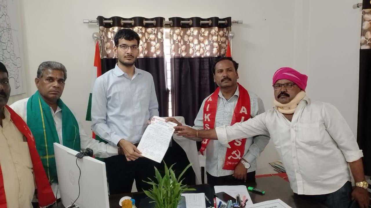 అక్షరటుడే, ఆర్మూర్ : Armoor | మొంథా తుపాన్ (Cyclone Montha) వల్ల నష్టపోయిన రైతులకు నష్ట పరిహారం చెల్లించాలని తెలంగాణ రైతుకూలీ సంఘం సభ్యులు డిమాండ్ చేశారు. ఈ మేరకు ఆర్మూర్ సబ్ కలెక్టర్ అభిగ్యాన్ మాల్వియాకు (Sub-Collector Abhigyan Malviya) వినతిపత్రం అందజేశారు.