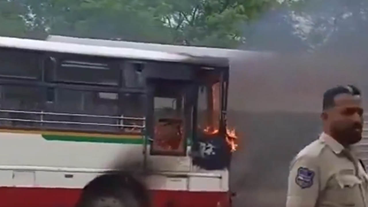 Front portion of the bus gutted. #Hyderabad #TSRTC pic.twitter.com/aWVJaUyoJx