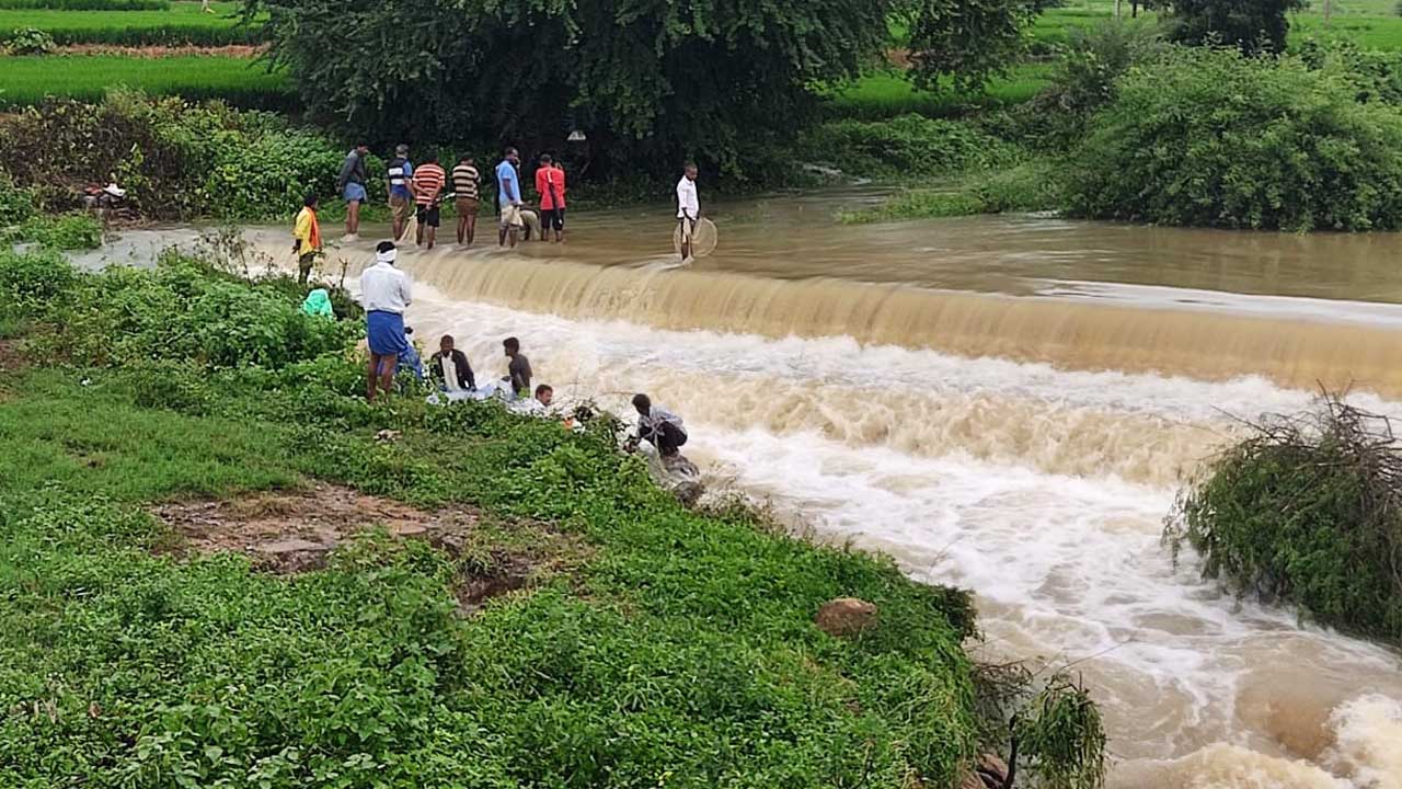 వరద ప్రవాహానికి దూరంగా ఉండాలని హెచ్చరికలు జారీ చేస్తున్నప్పటికీ, స్థానికులు ఆ సూచనలను పట్టించుకోకుండా ప్రాణాలను సైతం పణంగా పెట్టి చేపల వేట కొనసాగిస్తున్నారు. బాన్సువాడ మండలం కోనాపూర్లో చెరువు (Konapur Cheruvu) ప్రమాదకర స్థాయికి చేరి అలుగు పారుతోంది. నీటి ఉధృతి అధికంగా ఉన్నప్పటికీ స్థానికులు అలుగు వద్ద చేపలు పడుతున్నారు. దీంతో ప్రమాదాలు జరిగే అవకాశం ఉంది.
