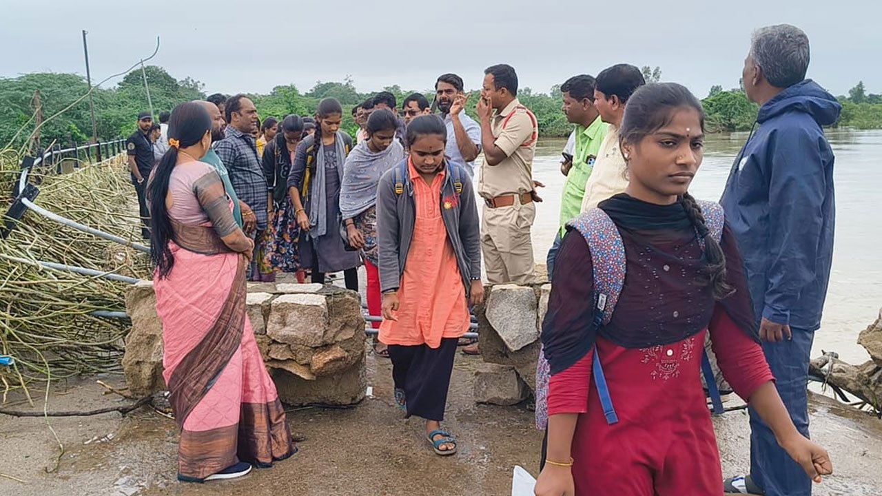 నిజాంసాగర్ (Nizam Sagar)లోకి ఎగువ నుంచి వరద తగ్గడంతో అధికారులు దిగువకు నీటి విడుదలను తగ్గించారు. 12 వరద గేట్ల ద్వారా కొంతమేర నీటి విడుదలను తగ్గించడంతో దిగువన వరద ఉధృతి తగ్గింది. దీంతో శుక్రవారం ఉదయం చిన్నాపూల్ వంతెన తేలింది. వంతెన మునిగిపోవడంతో అటువైపు గల ఆదర్శ పాఠశాలలో విద్యార్థినులు అనేక ఇబ్బందులు పడ్డారు. రెండు రోజులుగా భయంభయంగా కాలం వెళ్లదీశారు. ఈ విషయాన్ని పిట్లం ఏఎంసీ ఛైర్మన్ చికోటి మనోజ్ కుమార్, కాంగ్రెస్ మండల అధ్యక్షుడు ఏలే మల్లికార్జున్ జుక్కల్ ఎమ్మెల్యే తోట లక్ష్మీకాంతారావు (MLA Laxmikanth Rao) దృష్టికి తీసుకెళ్లారు. ఎమ్మెల్యే ఆదేశాల మేరకు మోడల్ పాఠశాల బాలికల వసతి వసతి గృహాన్ని శుక్రవారం ఉదయం ఖాళీ చేయించారు. విద్యార్థులను కస్తూర్బా గాంధీ వసతి గృహానికి తరలించారు.