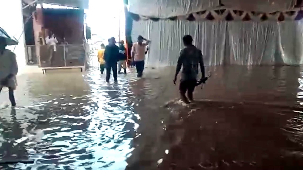 మహారాష్ట్రలో గత రెండు రోజులుగా కురిసిన వర్షాలకు వరద నీరు (Flood Water) ఏకంగా ఆలయంలోకి చేరింది. పాలజ్లో కర్ర గణపతికి ఎంతో విశిష్టత ఉంది. నిర్మల్, కామారెడ్డి, ఆదిలాబాద్, నిజామాబాద్ జిల్లాల నుంచి భక్తులు అధిక సంఖ్యలో దర్శించుకుంటారు. అయితే ప్రస్తతం వరద నీటిని బయటకు తోడేసే పనిలో అక్కడి యంత్రాంగం నిమగ్నమయ్యారు.