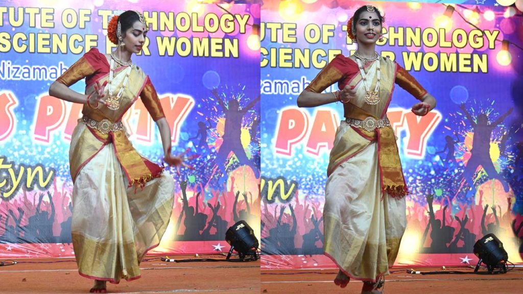 ఫ్రెషర్స్పార్టీ (freshers’ party) సందర్భంగా విద్యార్థినుల నృత్యాలు అలరించాయి. విద్యార్థినులు వెస్ట్రన్, క్లాసికల్ డ్యాన్సులు చేశారు. విద్యార్థినుల ర్యాంప్వాక్ ప్రధాన ఆకర్షణగా నిలిచింది. కార్యక్రమంలో ప్రిన్సిపల్ డాక్టర్ సెల్వరాజ్, వైస్ ప్రిన్సిపాల్ సాయారెడ్డి, సిబ్బంది వేణు గోపాల్, అధ్యాపకులు పాల్గొన్నారు.