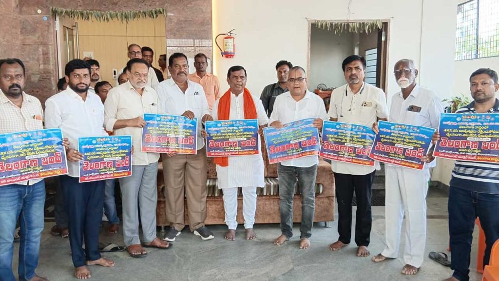 బీసీ సంక్షేమ సంఘం నాయకులతో కలిసి బంద్ పోస్టర్లను ఆవిష్కరిస్తున్న అర్బన్ ఎమ్మెల్యే ధన్పాల్ సూర్యనారాయణ గుప్తా