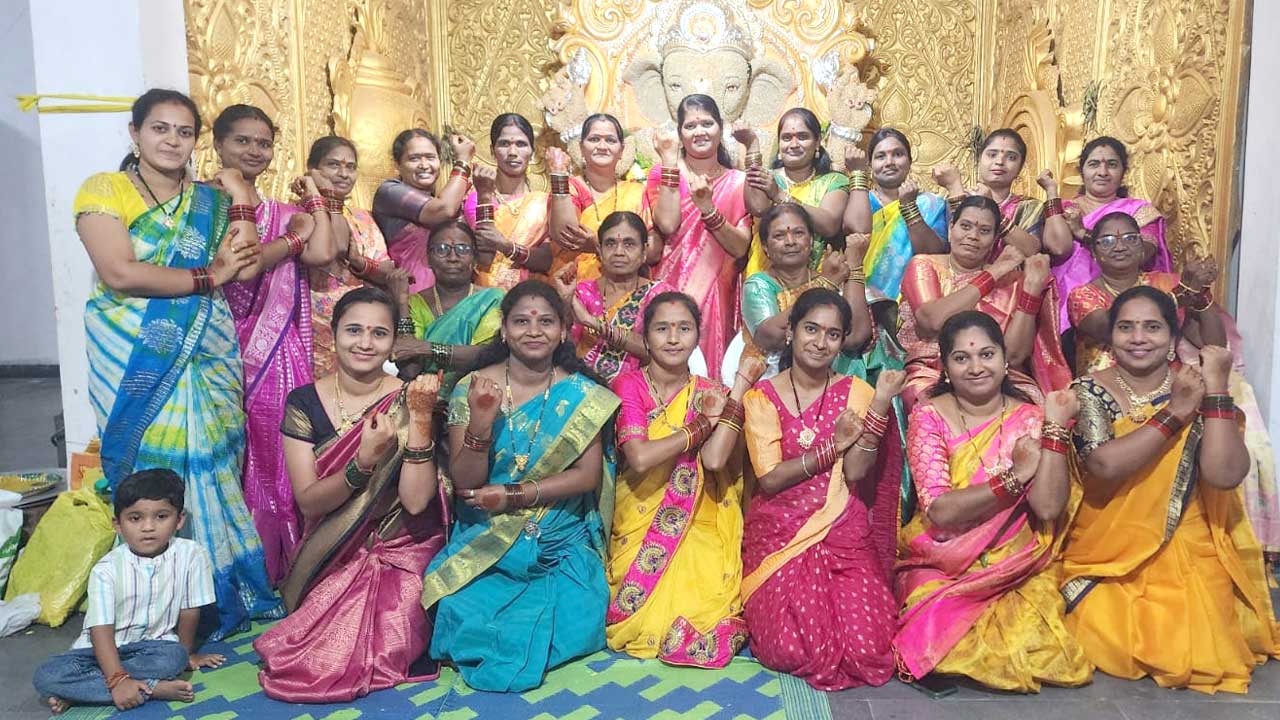 అక్షరటుడే, ఇందూరు: Nizamabad city | జిల్లావ్యాప్తంగా గణేశ్ మండపాల (Ganesh Mandapalu) వద్ద గాజుల సంబరాల్లో మహిళలు ఉత్సాహంగా పాల్గొన్నారు. ఈ సందర్భంగా ఒకరికొకరు గాజులు వేసుకుంటూ ఉత్సాహంగా ఆడిపాడారు. ప్రత్యేక పూజలు నిర్వహించారు.