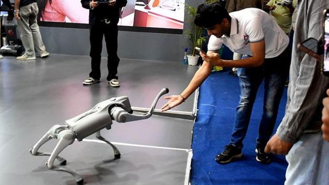 కేంద్ర ప్రభుత్వం ప్రతిష్టాత్మకంగా ఢిల్లీలో (Delhi) ఏఐ సదస్సు (AI Conference) నిర్వహిస్తోంది. ఇందులో వివిధ దేశాల ప్రతినిధులు పాల్గొంటున్నారు. ఈ క్రమంలో దేశంలోని పలు యూనివర్సిటీలు, స్టార్టప్లు తమ ఆవిష్కరణలను ప్రదర్శనకు ఉంచాయి. యూపీలోని గ్రేటర్ నోయిడాకు చెందిన గల్గోటియాస్ యూనివర్సిటీ ఈ సదస్సుల్లో స్టాల్ను ఏర్పాటు చేసింది. రోబోడాగ్ను అందులో ప్రదర్శించారు. యూనివిర్సిటీ ప్రొఫెసర్ మాట్లాడుతూ.. విశ్వవిద్యాలయంలోని సెంటర్ ఆఫ్ ఎక్స్లెన్స్లో దీనిని తయారు చేసినట్లు చెప్పుకొచ్చారు. ఆ వీడియోలు సోషల్ మీడియాలో వైరల్ అయ్యాయి.