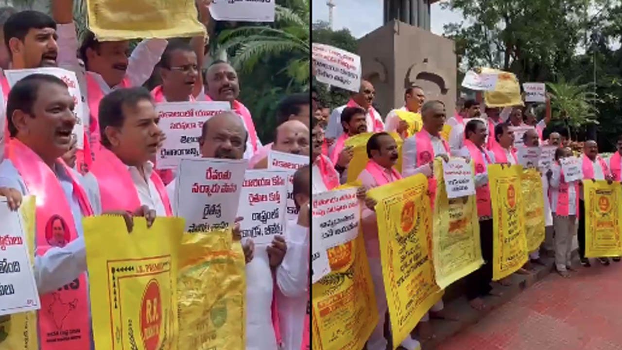 ఉదయం అసెంబ్లీ ప్రారంభానికి ముందు గులాబీ ఎమ్మెల్యేలు తొలుత గన్పార్కు అమరుస్థూపం వద్ద నిరసనలు కార్యక్రమాలు నిర్వహించారు. గణపతి బొప్పా మోరియా.. కావాలయ్యా యూరియా అని నినాదాలు చేశారు. అనంతరం అసెంబ్లీ సమావేశాలకు హాజరయ్యారు. జూబ్లీహిల్స్ ఎమ్మెల్యే మాగంటి గోపినాథ్కు సంతాపం తెలిపిన అనంతరం సభ ఆదివారానికి వాయిదా పడింది. దీంతో బీఆర్ఎస్ ఎమ్మెల్యేలు (BRS MLA) అసెంబ్లీ నుంచి నేరుగా వ్యవసాయ శాఖ కమిషనరేట్ వద్దకు తరలివెళ్లి ఆందోళన చేపట్టారు.