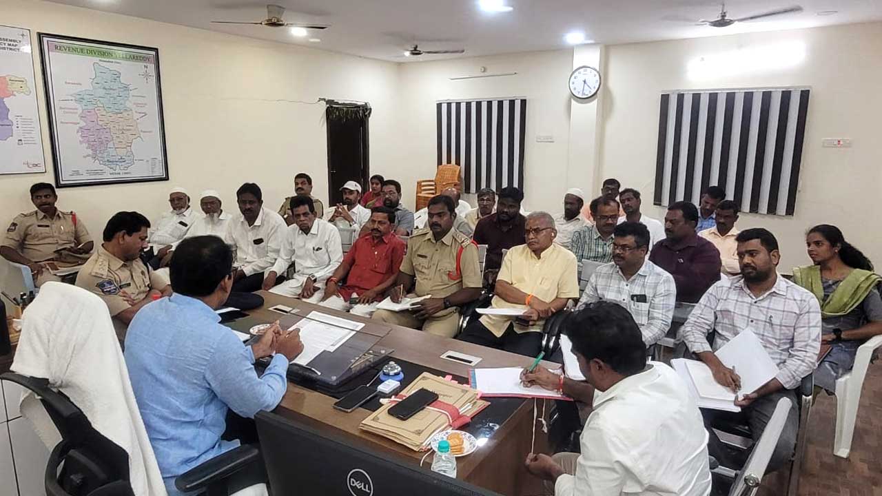 ఆర్డీవో కార్యాలయంలో (RDO Office) శుక్రవారం గణేష్ ఉత్సవాలపై ప్రభుత్వ శాఖలు, పొలిటికల్ పార్టీలు, మత పెద్దల ప్రతినిధులతో పీస్ కమిటీ సమావేశం (Peace Committee Meeting) నిర్వహించారు. గణేష్ ఉత్సవాల నిర్వహణపై హిందూ, ముస్లిం ప్రతినిధుల అభిప్రాయాలు, సూచనలను ఆర్డీవో స్వీకరించారు.