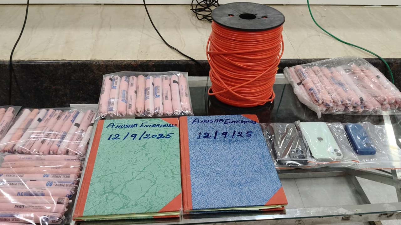 నిజామాబాద్ జిల్లా (Nizamabad District) నందిపేటకు చెందిన వరికుప్పల నర్సింలు అనే వ్యక్తి నుంచి డిటోనేటర్లు కొనుగోలు చేసి గాంధారి మండలంలోని నివాస ప్రాంతాల మధ్య ఉన్న బండరాళ్లను పేల్చేందుకు తీసుకెళ్తున్నట్లుగా విచారణలో తేలింది. దీంతో పేలుడు పదార్థాలు తరలిస్తున్న కామారెడ్డి మండలం (Kamareddy Mandal) గర్గుల్ గ్రామానికి చెందిన రాజు, ఛత్తీస్ఘడ్ రాష్ట్రం మౌలమవ్ పూర్కు చెందిన చౌకి, పనర్వాణి గ్రామానికి చెందిన శేషులాల్లను అరెస్ట్ చేశారు. పేలుడు పదార్థాలు విక్రయించిన వ్యక్తి వద్ద 5 వేలకు పైగా ఉన్న జిలిటీన్ స్టిక్స్ ఉన్న మ్యాగ్జిన్ లభించిందని, వాటి వివరాలు ఇంకా తెలియాల్సి ఉందని ఎస్పీ తెలిపారు. అరెస్ట్ చేసిన ఇద్దరు వ్యక్తుల వద్ద 50 జిలెటిన్ స్టిక్స్, 6 డిటోనేటర్లు, 52 మీటర్ల వైరు, ఒక బైక్, మొబైల్, స్వాధీనం చేసుకోవడం జరిగిందన్నారు. అలాగే విక్రయించిన వ్యక్తి నర్సింలు వద్ద 20 జిలెటిన్ స్టిక్స్, 4 డిటోనేటర్లు, 5 మీటర్ల వైర్, లాగ్ బుక్స్, మొబైల్ స్వాధీనం చేసుకున్నామన్నారు.